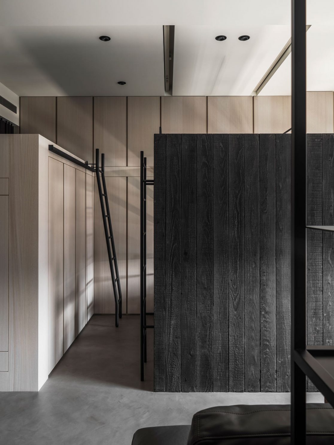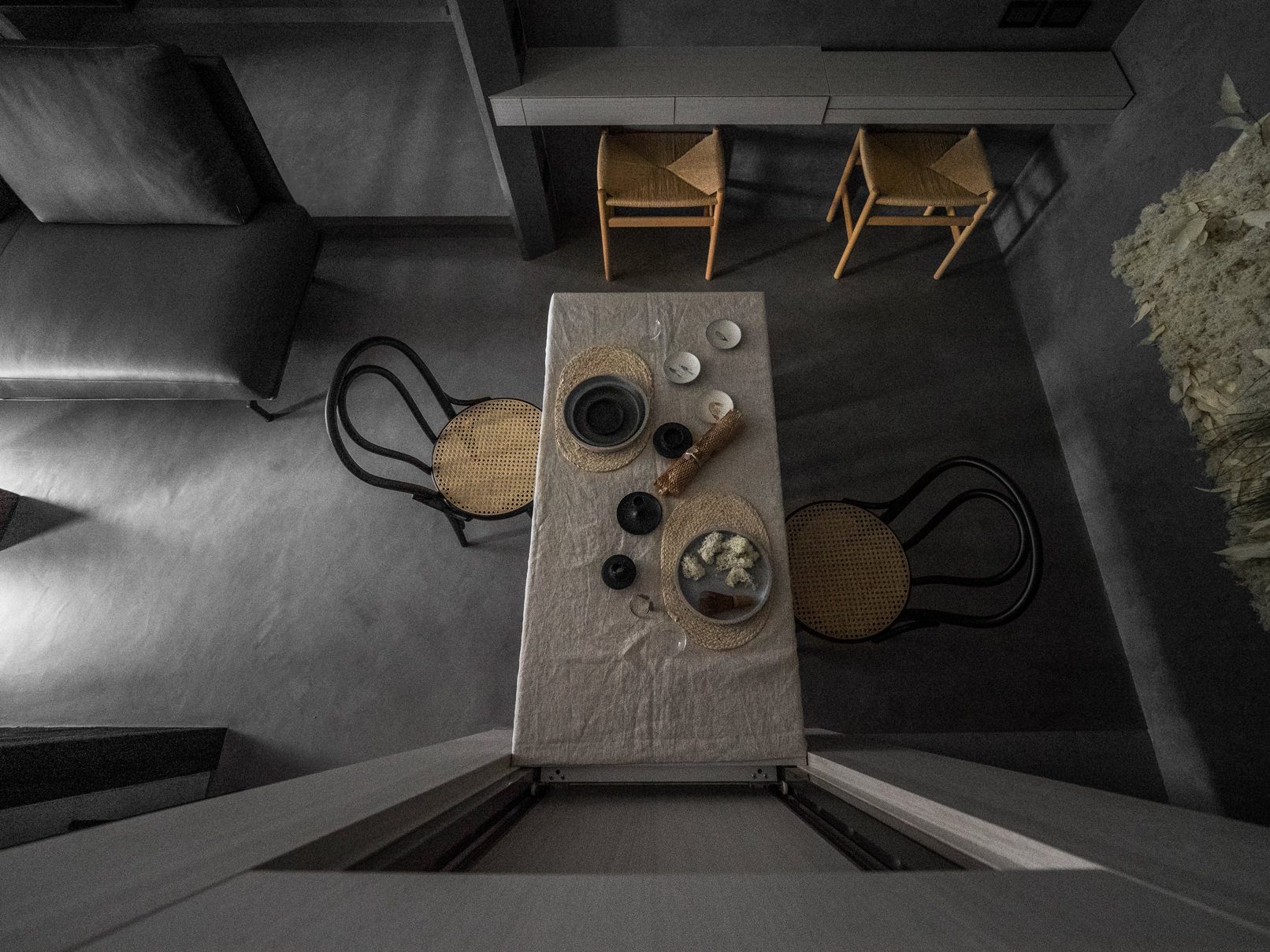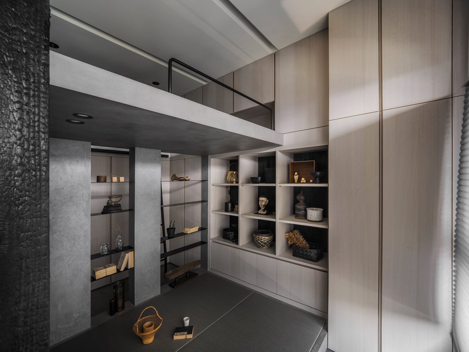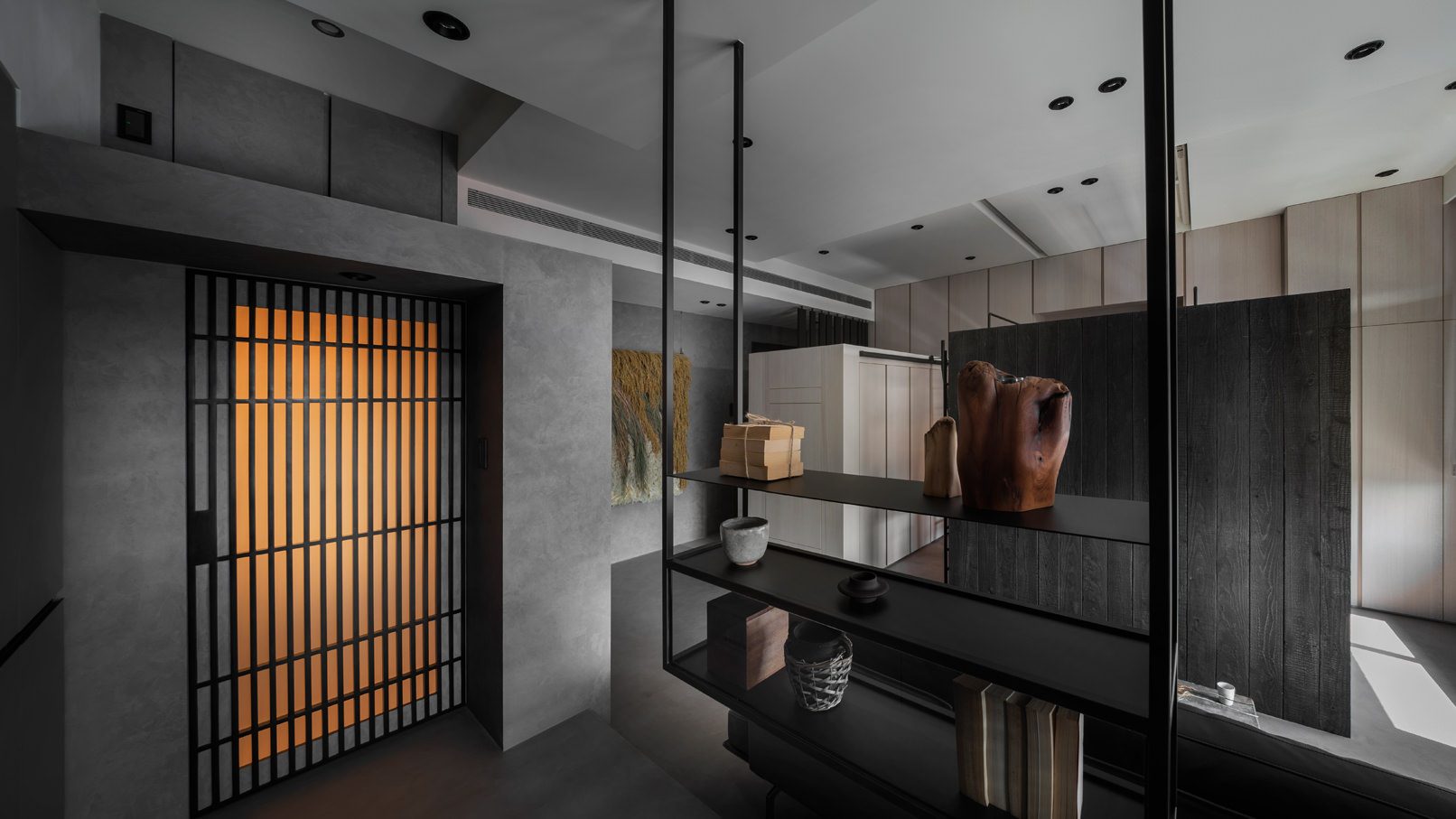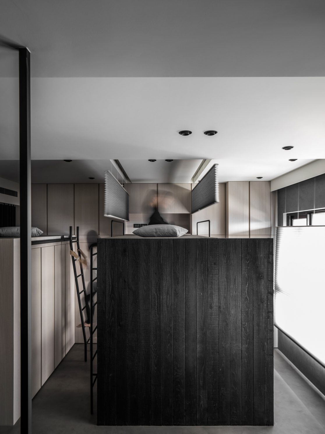 燒杉、稻穗、榻榻米的氣味,把人帶回泛黃相片裡的從前;灰調的磨石子與礦物塗料,則將屋主住過的日式老房子裡熟悉的觸感,迎著海風從北海岸一路吹了進來。這三米高的11坪微型空間,是屬於一對準備退休的夫婦所有。從夫婦兩人分享的過往生活畫面,衍伸出以台灣早期的黑瓦古厝群為意象的平面方案。三座量體設計不僅提供兩人的所有生活所需,同時還保留了兩個兒子偶爾來訪時可以過夜休憩的位置。而量體間的動線與關係,則比擬從前的社區巷弄,鄰居之間那種充滿人情味,容易互動卻又保有各自隱私的那種美好距離。延伸平面構想的畫面,將積累的時間與回憶,以材質本身最自然的樣貌,但不同方式的運用表現,帶進立面設計與軟裝陳設。牆上的裝置藝術更是特別為這個空間,在現場直接進行創作,手工製作出的成品。與其他具時間感的塗料、燒杉、手作陶器、老件等搭配,都能感知到不同的歲月起伏。屋主夫婦曾提出他們想要一個「沒有設計的設計」,但我們更想給他們的,是一種貼近人生下半場所追尋的歸真返樸,在這片熟悉的土地上能恣意感受,一個樸素、沈靜的未來。
