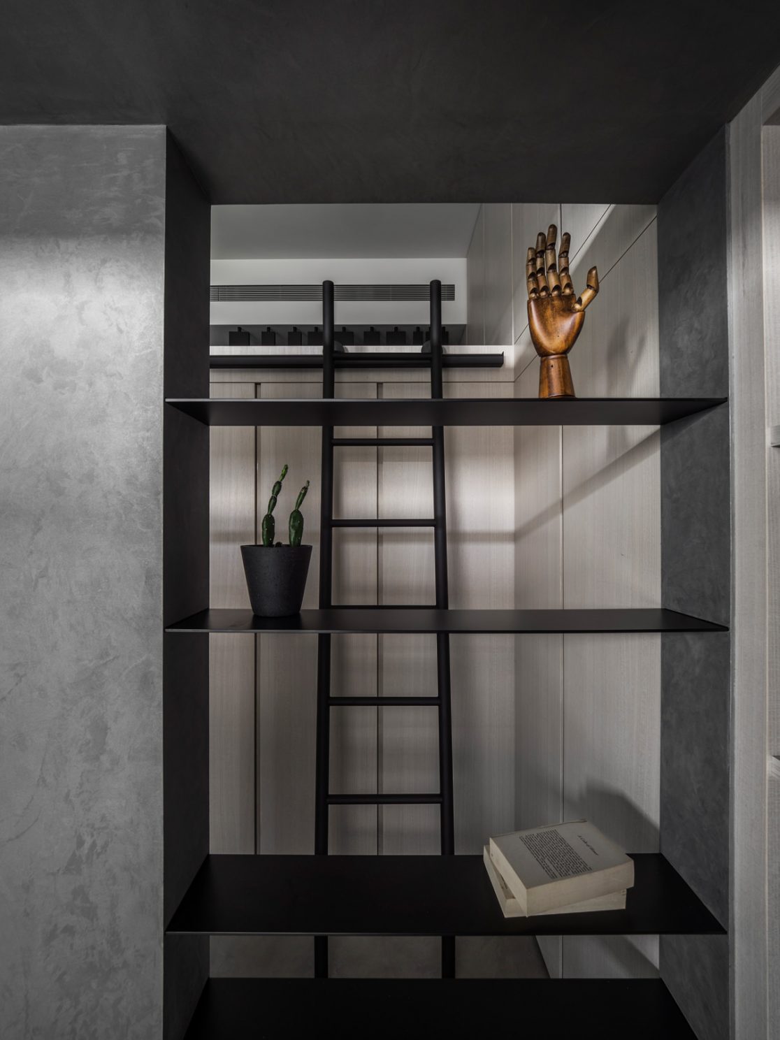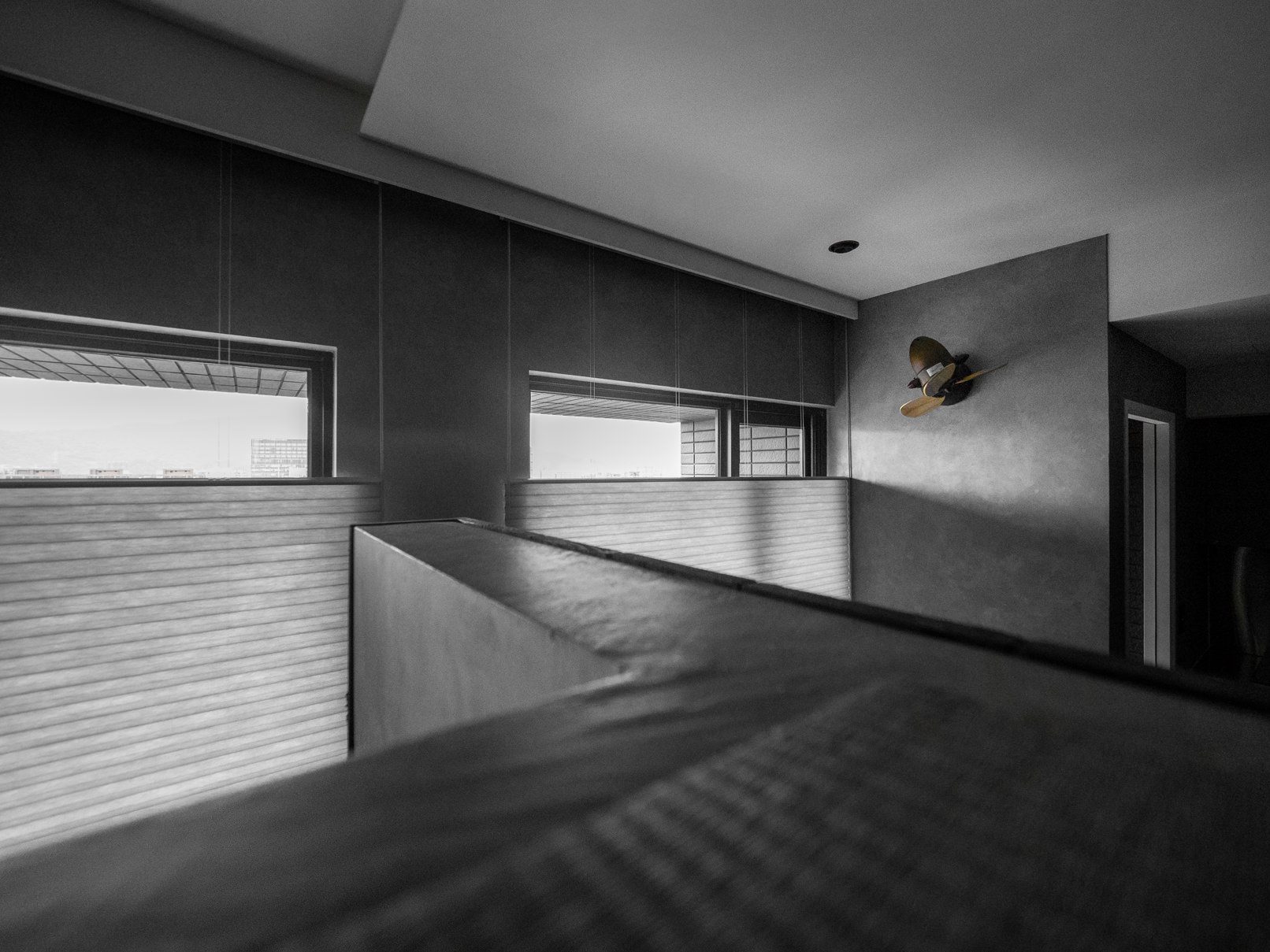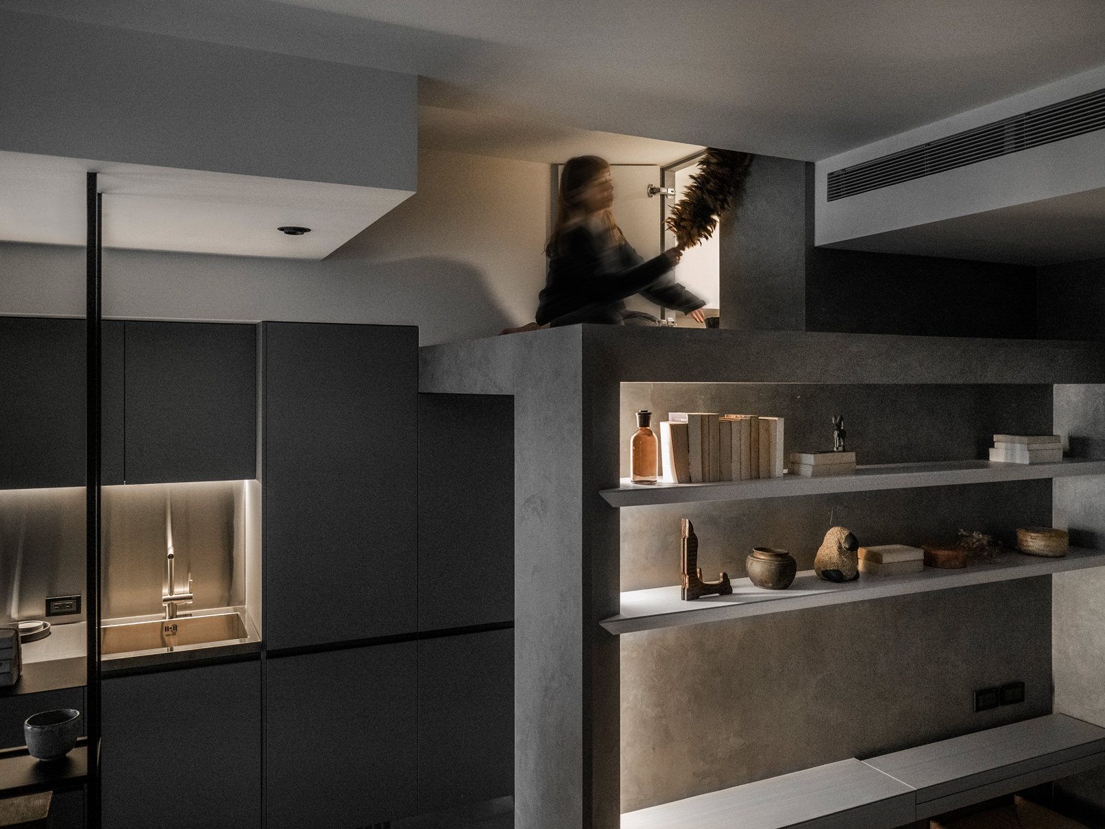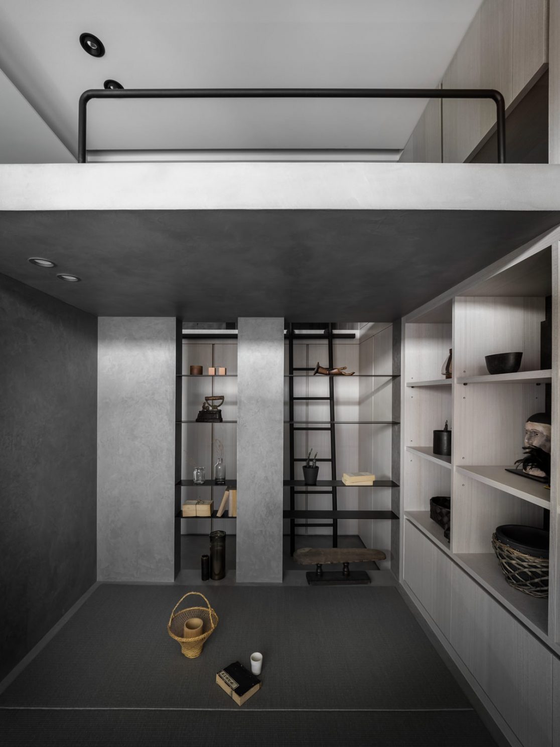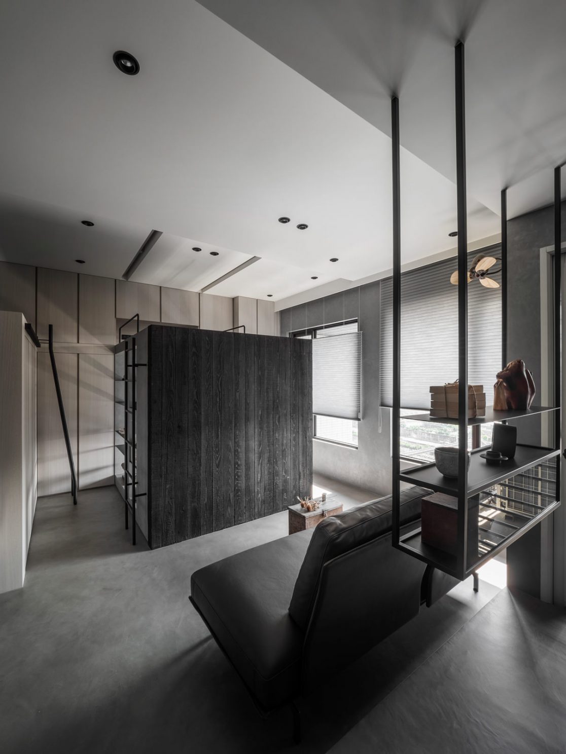 燒杉、稻穗、榻榻米的氣味,把人帶回泛黃相片裡的從前;灰調的磨石子與礦物塗料,則將屋主住過的日式老房子裡熟悉的觸感,迎著海風從北海岸一路吹了進來。這三米高的11坪微型空間,是屬於一對準備退休的夫婦所有。從夫婦兩人分享的過往生活畫面,衍伸出以台灣早期的黑瓦古厝群為意象的平面方案。三座量體設計不僅提供兩人的所有生活所需,同時還保留了兩個兒子偶爾來訪時可以過夜休憩的位置。而量體間的動線與關係,則比擬從前的社區巷弄,鄰居之間那種充滿人情味,容易互動卻又保有各自隱私的那種美好距離。延伸平面構想的畫面,將積累的時間與回憶,以材質本身最自然的樣貌,但不同方式的運用表現,帶進立面設計與軟裝陳設。牆上的裝置藝術更是特別為這個空間,在現場直接進行創作,手工製作出的成品。與其他具時間感的塗料、燒杉、手作陶器、老件等搭配,都能感知到不同的歲月起伏。屋主夫婦曾提出他們想要一個「沒有設計的設計」,但我們更想給他們的,是一種貼近人生下半場所追尋的歸真返樸,在這片熟悉的土地上能恣意感受,一個樸素、沈靜的未來。