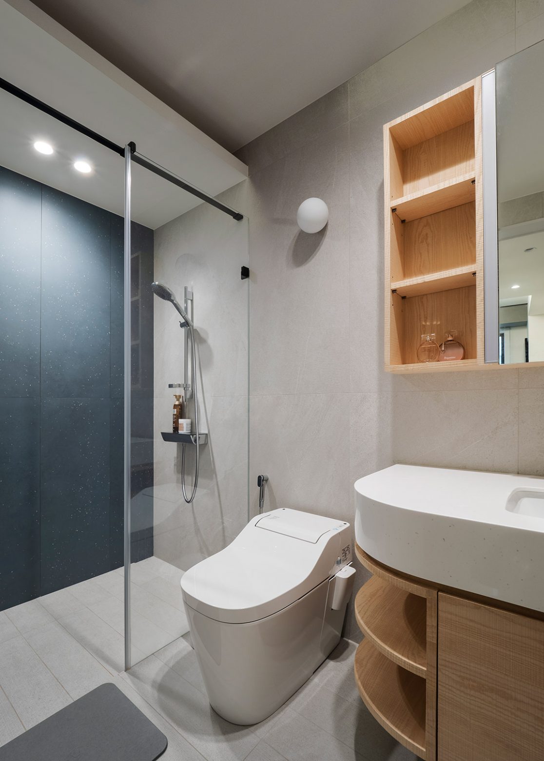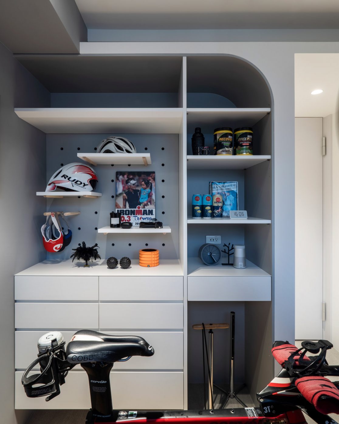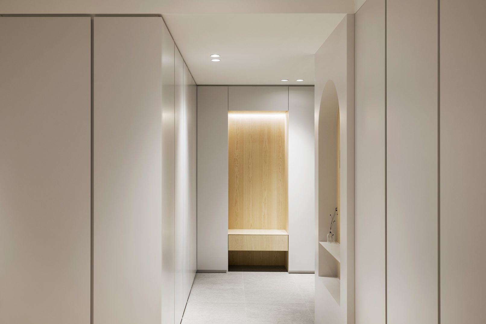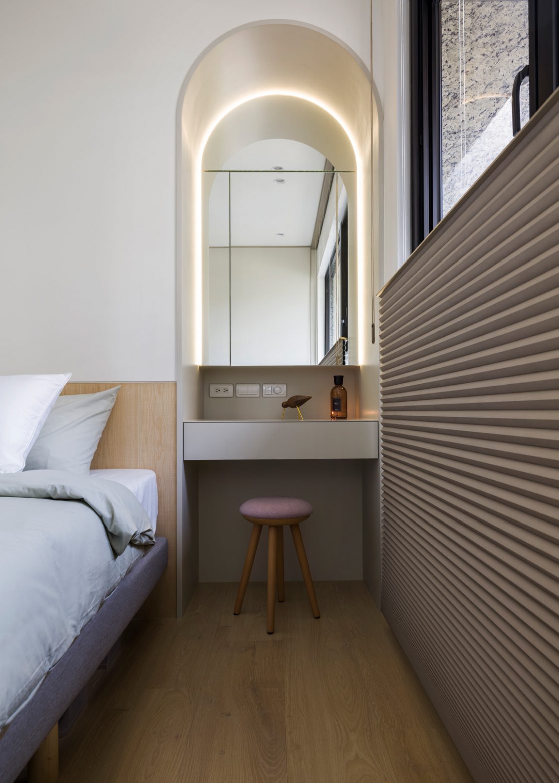 疫情改變了全世界的腳步,也深深影響住宅設計的思考與討論。當全家人長時間共處時,心的距離如何才能剛剛好?在尊重每一位成員的想法與需求下進行平面規劃,將原始為毛胚狀態的新成屋,形成各自可以時而獨享、時而共享的生活空間,如:爸爸的練功房、女孩們的全對稱臥房、媽媽的廚房與大中島⋯。改動原始公共區域在窗邊、房間於內部的配置,讓每個臥室都擁有對外視野的通透與光線,公共空間雖整合集中至內,但透過平行配置的餐桌、中島與沙發,整區更顯完整且串起彼此對話。材質及色調從屋主一家平日喜愛的大自然感受出發,以木質、白、灰調為主進行搭配,簡單清新。石紋磚拼出彷彿地毯模樣的地坪,尤其別具特色。有隱私、有交會,又近又遠的,正是家人間最適當的安全距離。疫情下的生活,能不感覺到受困,心,自然更加靠近。