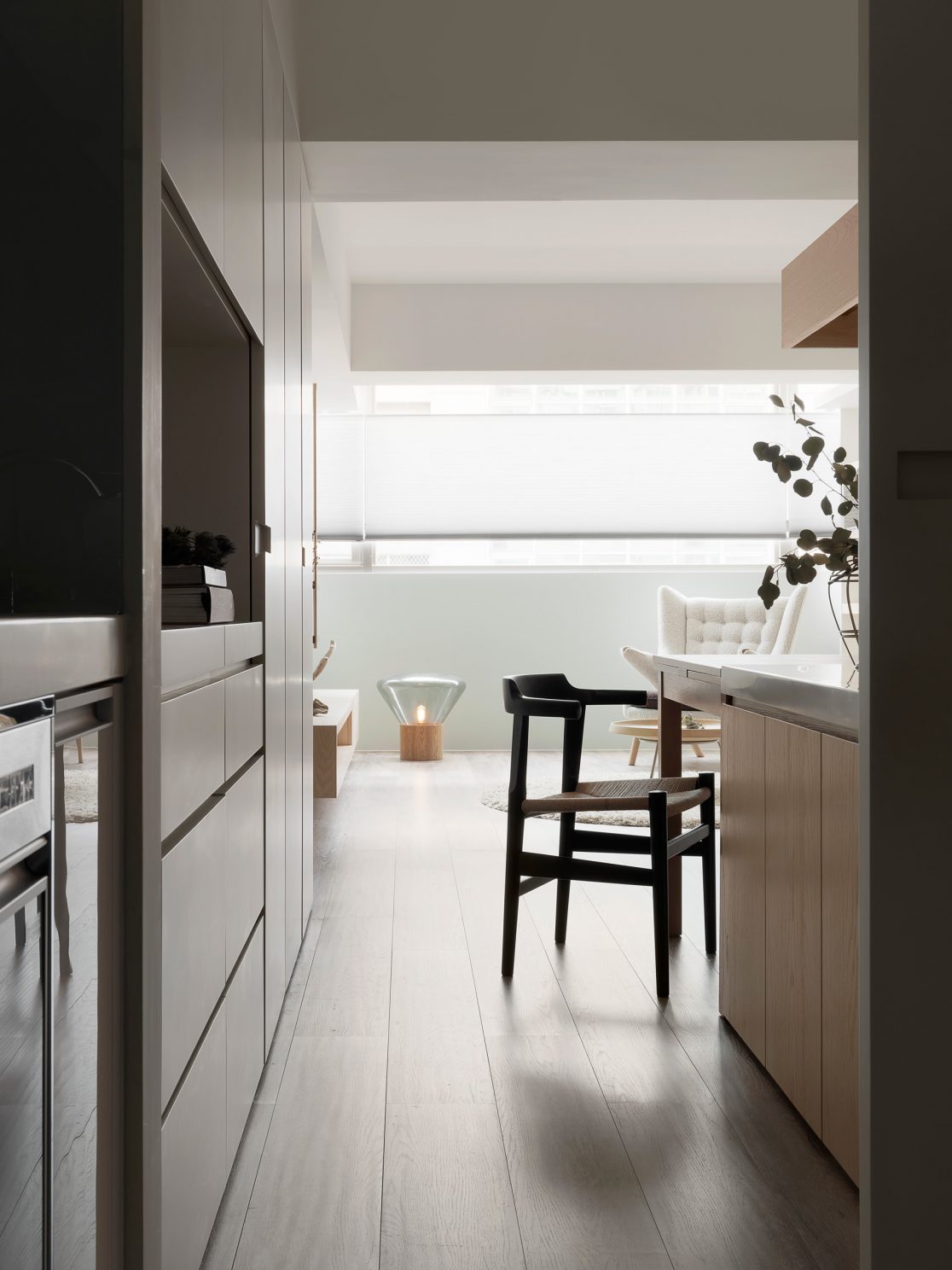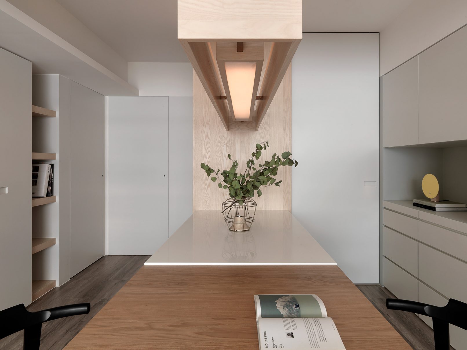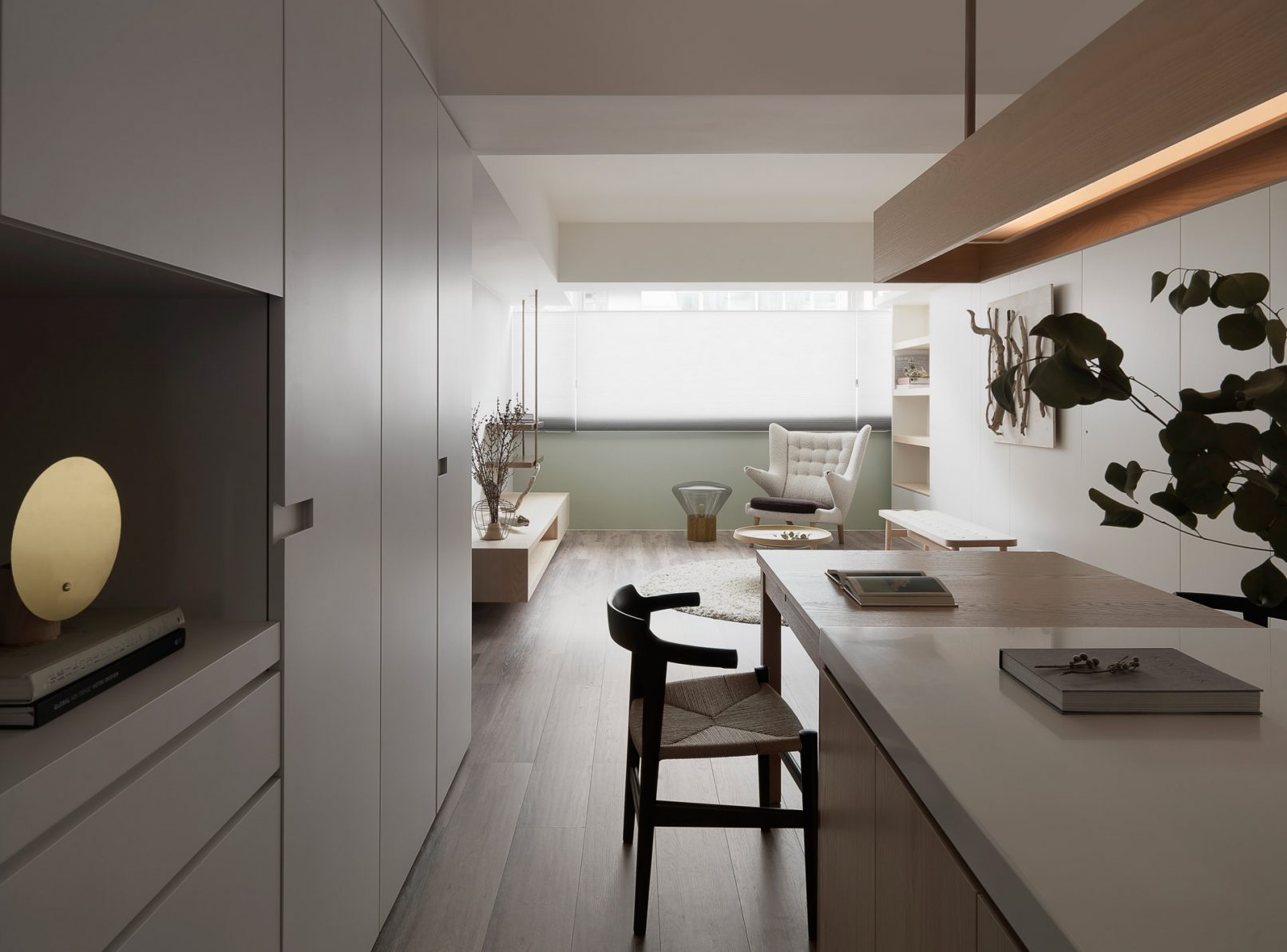 家,從來不只是個下班後放鬆休息的角落,而是一個能讓你愜意地慢慢沉殿享受的地方。尤其對於經常花時間在家照顧家庭與小孩的主婦,家更是擁有無可取代的重要角色。以木皮、鐵件、配上簡潔線條與素雅淡色調打造而成的家,可以為生活帶來寧靜、沉潛的氛圍; 專為熱愛料理與手作的媽媽量身打造的廚房中島,是她展現廚藝與家人相聚的中心,也是她待在家裡練習手作興趣,同時能整齊收納、保持乾淨的空間。靜靜流瀉的優雅與雋永在這家裡,讓人待下來就不想離開。
