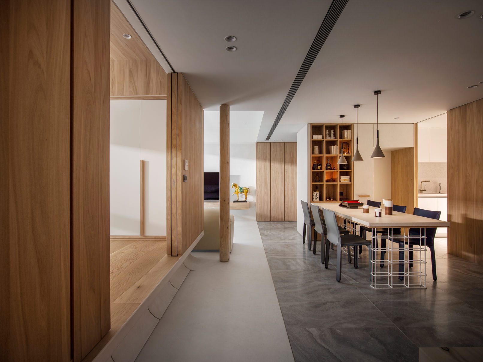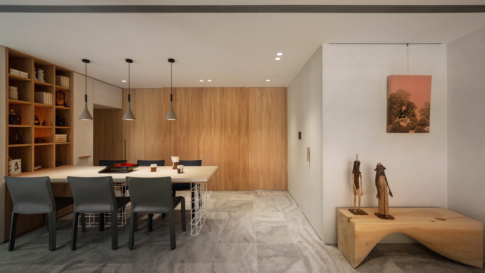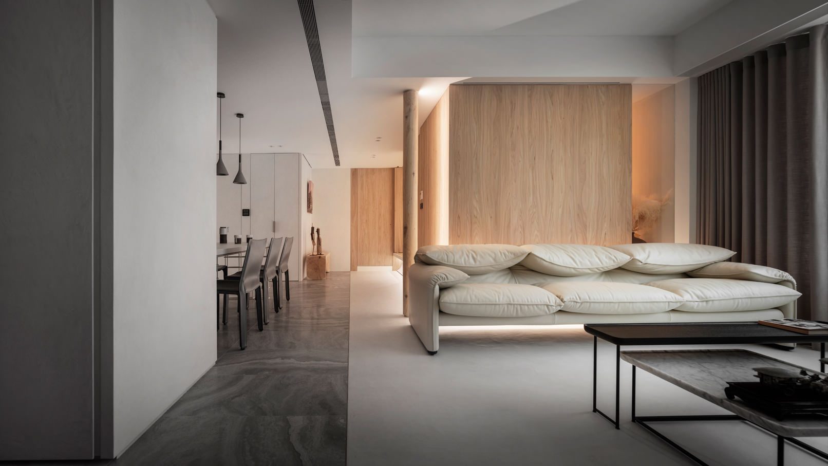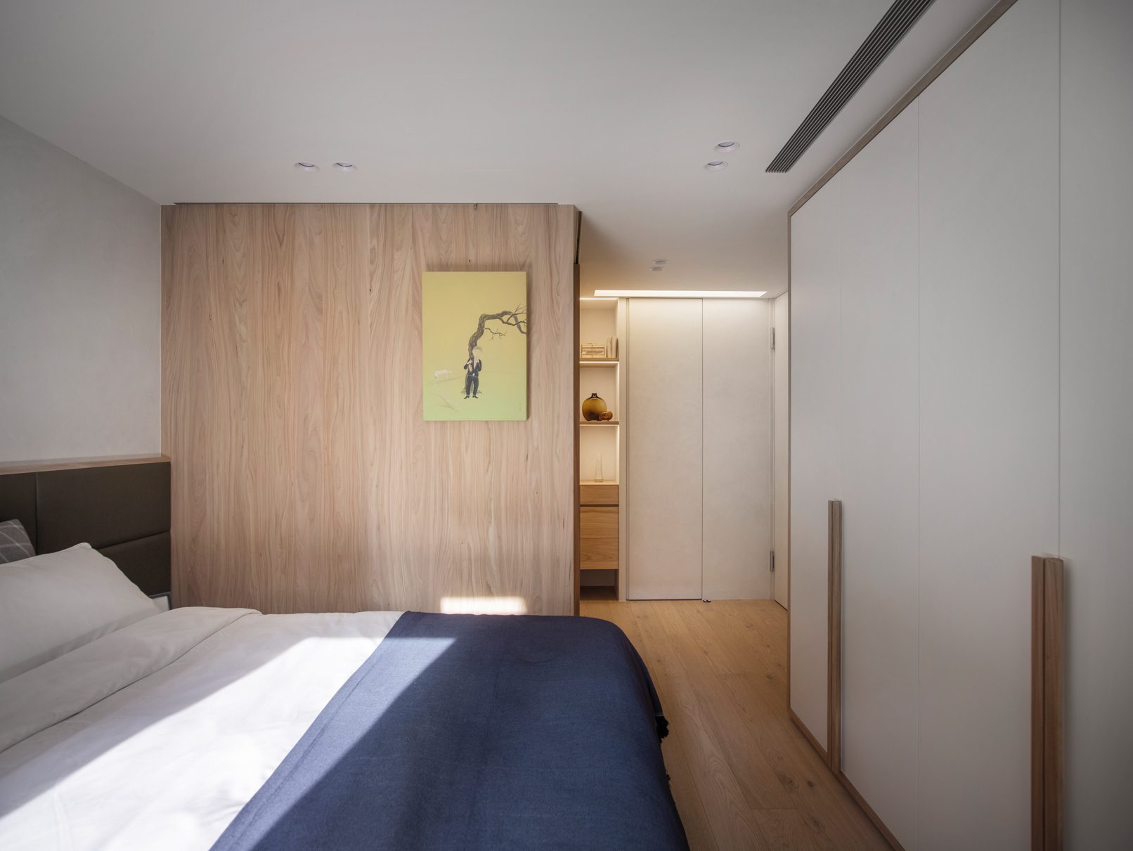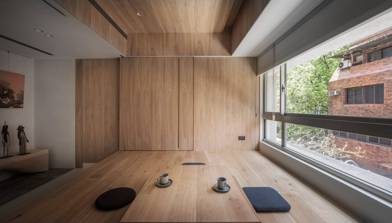 越來越多記憶掉了,很多事情妳也都不再會了。但不管失去多少,妳總還是記得笑。看妳笑著,我也就能不感覺到傷感。看妳笑著,我也就一起笑了。帶著老伴回到熟悉的區域,買下一個也有年紀的房子,這將是他們的最後一個家,要繼續相依相伴的地方。ㄧ個像是公園裡的木墩亭子,是這個空間中富足生活的起點:好客的男主人泡上一壺好茶,與老友談天說地,50年來的故事歷久彌新,女主人隨側在旁,靜靜聆聽微笑,一如既往。亭外的福衫實木柱,象徵整個家的頂天支柱,頂著整個房子還有一家人。側邊隱晦崁入燈條,見光不見燈的,與木材透出的淡淡香氣一起,彷彿一家之主的那股無形力量。窗外綠意搖曳,偶有鳥叫蟲鳴,也有人聲車響。光影隨著時間入內,輕柔地踩踏幾個漫步,過往繁華在安穩的現世看來,一切都是如此從容淡然。材質皆保留原始紋理,全室乾淨自然、內斂素雅。時光未央,歲月靜好。清淺的日子,在平淡中日漸變暖。我希望讓妳記得的,都是最溫暖的美好。
