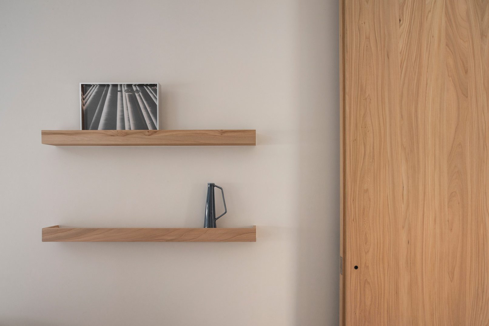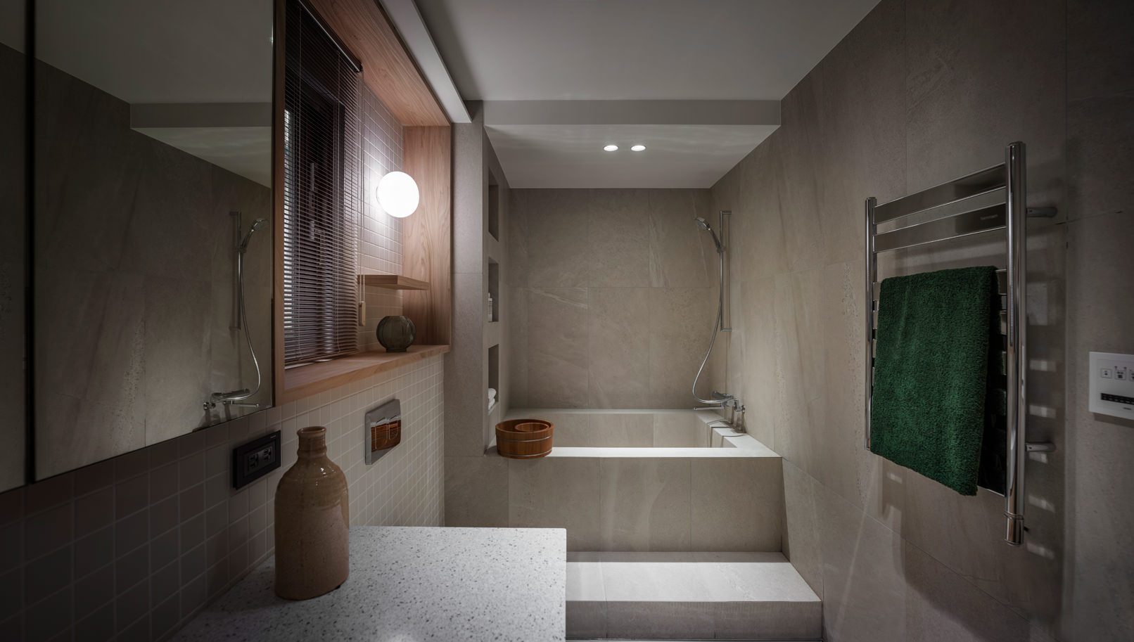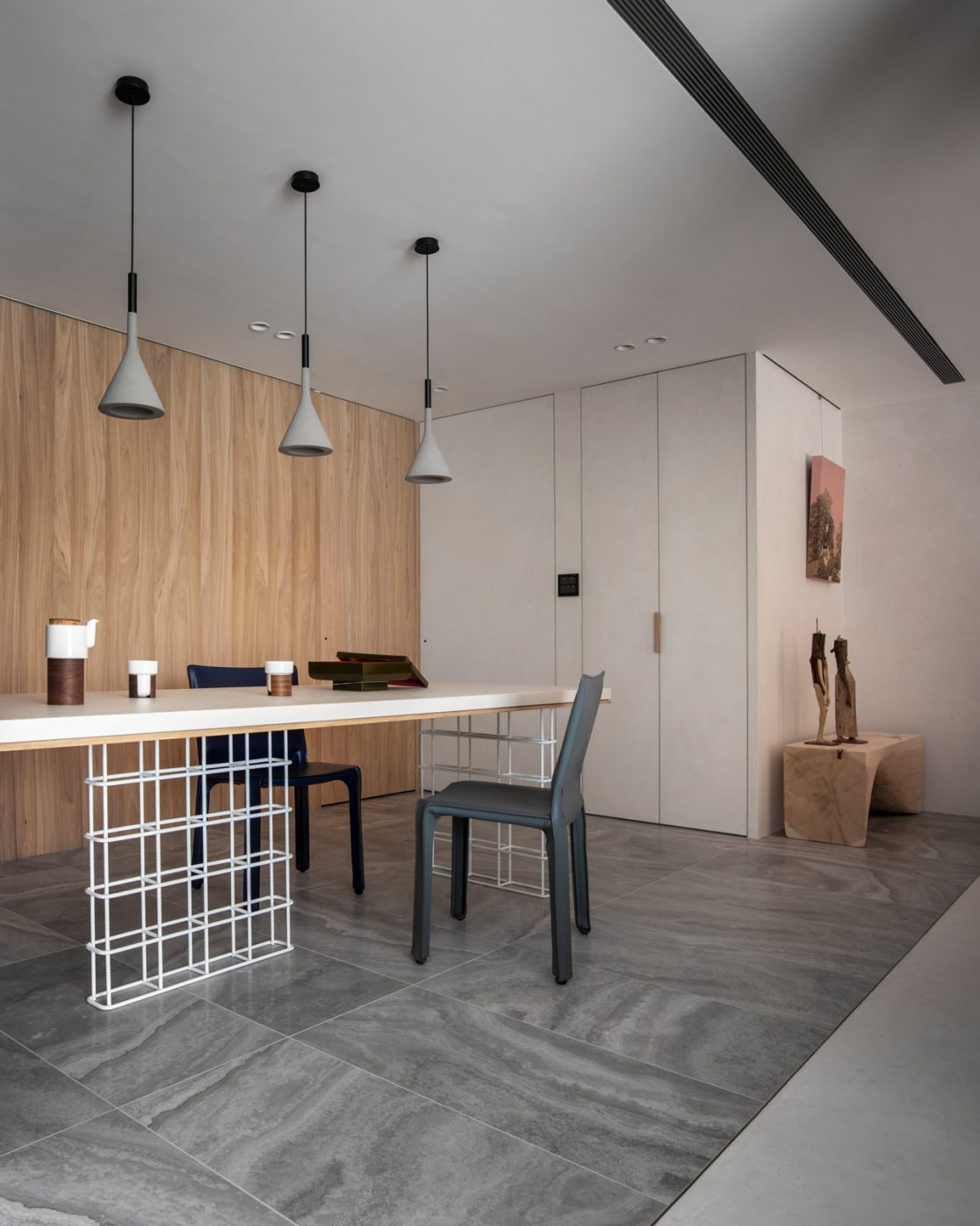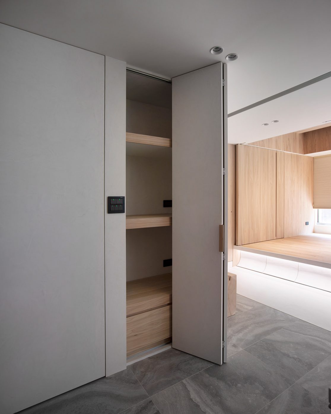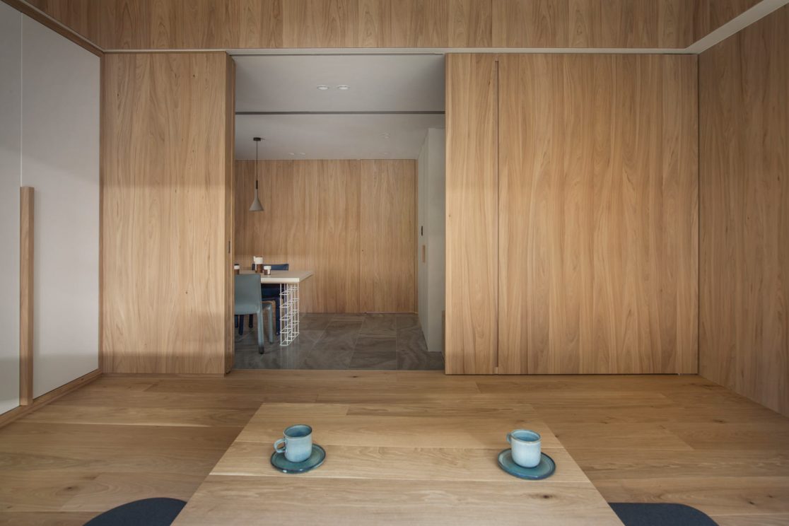 越來越多記憶掉了,很多事情妳也都不再會了。但不管失去多少,妳總還是記得笑。看妳笑著,我也就能不感覺到傷感。看妳笑著,我也就一起笑了。帶著老伴回到熟悉的區域,買下一個也有年紀的房子,這將是他們的最後一個家,要繼續相依相伴的地方。ㄧ個像是公園裡的木墩亭子,是這個空間中富足生活的起點:好客的男主人泡上一壺好茶,與老友談天說地,50年來的故事歷久彌新,女主人隨側在旁,靜靜聆聽微笑,一如既往。亭外的福衫實木柱,象徵整個家的頂天支柱,頂著整個房子還有一家人。側邊隱晦崁入燈條,見光不見燈的,與木材透出的淡淡香氣一起,彷彿一家之主的那股無形力量。窗外綠意搖曳,偶有鳥叫蟲鳴,也有人聲車響。光影隨著時間入內,輕柔地踩踏幾個漫步,過往繁華在安穩的現世看來,一切都是如此從容淡然。材質皆保留原始紋理,全室乾淨自然、內斂素雅。時光未央,歲月靜好。清淺的日子,在平淡中日漸變暖。我希望讓妳記得的,都是最溫暖的美好。