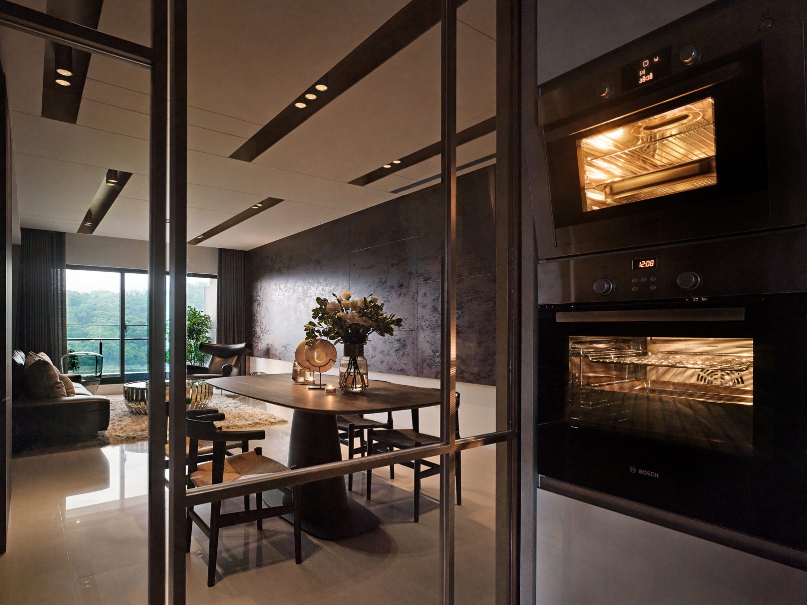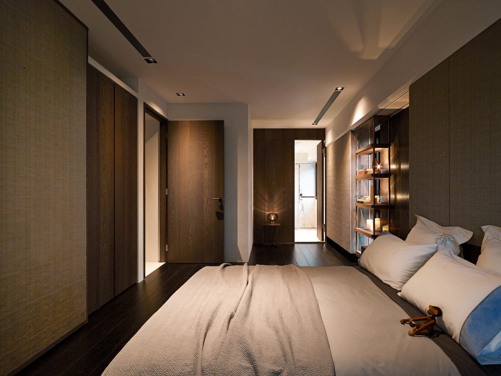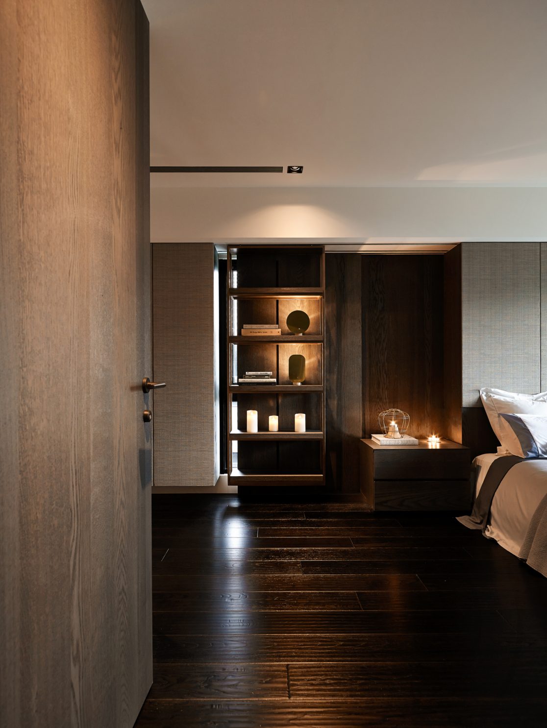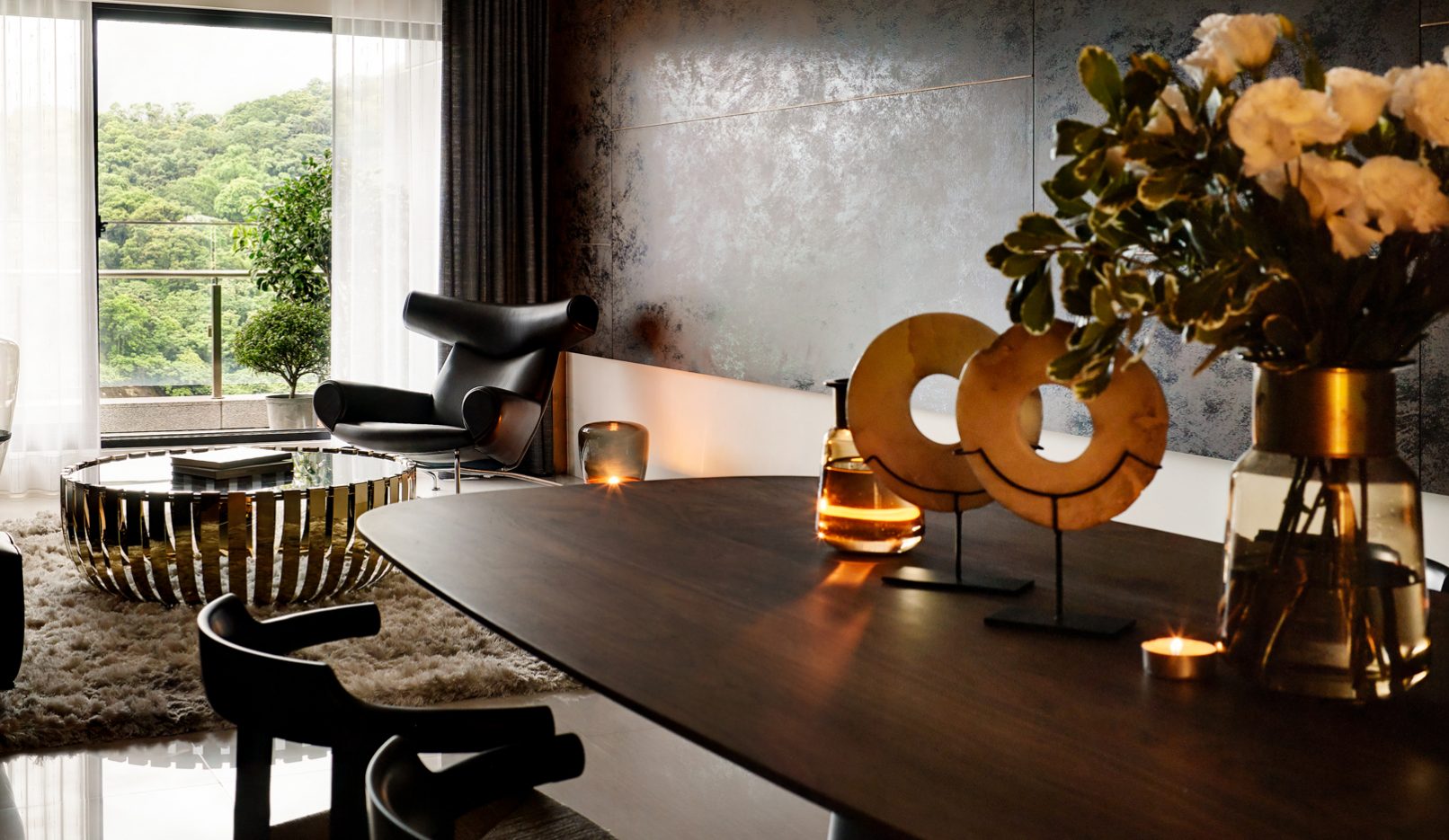 理性是規律的。感性是跳躍的。在這個宛若回歸山居的生活,室外綠意引入至現代居所,室內滲透著屋主理性思考的痕跡;面對山景與大面積的反射地板, 型塑融合自然的空間氛圍; 順著拋光面地磚反射於家具的光影,幻化成水影;鐵鏽色的薄磚在立面,彷若自然山岩伴隨著窗外綠意及天板間隙灑落的天光,創造了回歸山林時,家與環境的自然連結。主卧室融合木質的鐵件收納櫃,更為空間帶來整個亮點,手刮地板與眾不同的質感,與牆上織品相呼應。整體細緻而理性的現代氛圍,不單散發著低調奢華的氣氛,更徹底滿足了屋主對家的詮釋。
