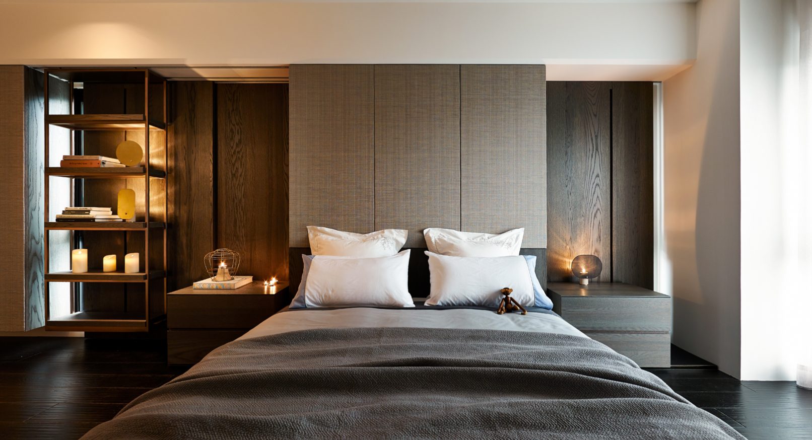 A house that has the best of both worlds – one that is modern yet inspired directly by nature. Ideally form and function should happily coexist and compliment each other, and here clues of such are plenty to go around. Thin, rust color tile on the wall draws inspiration from the crag, while lighting from the ceiling seemingly connect the final product to the house’s creative muse. Other design highlights in the master bedroom include headboard, hand-scrapped wood flooring, and a metal shelf system with a touch of wood. Well though-out, contemporary, and luxurious at the core, this house is executed well enough to present a low key and organic look, which speaks plenty of the owner’s homage and unique interpretation of mother nature.