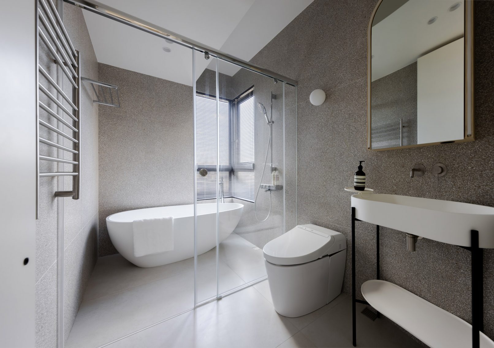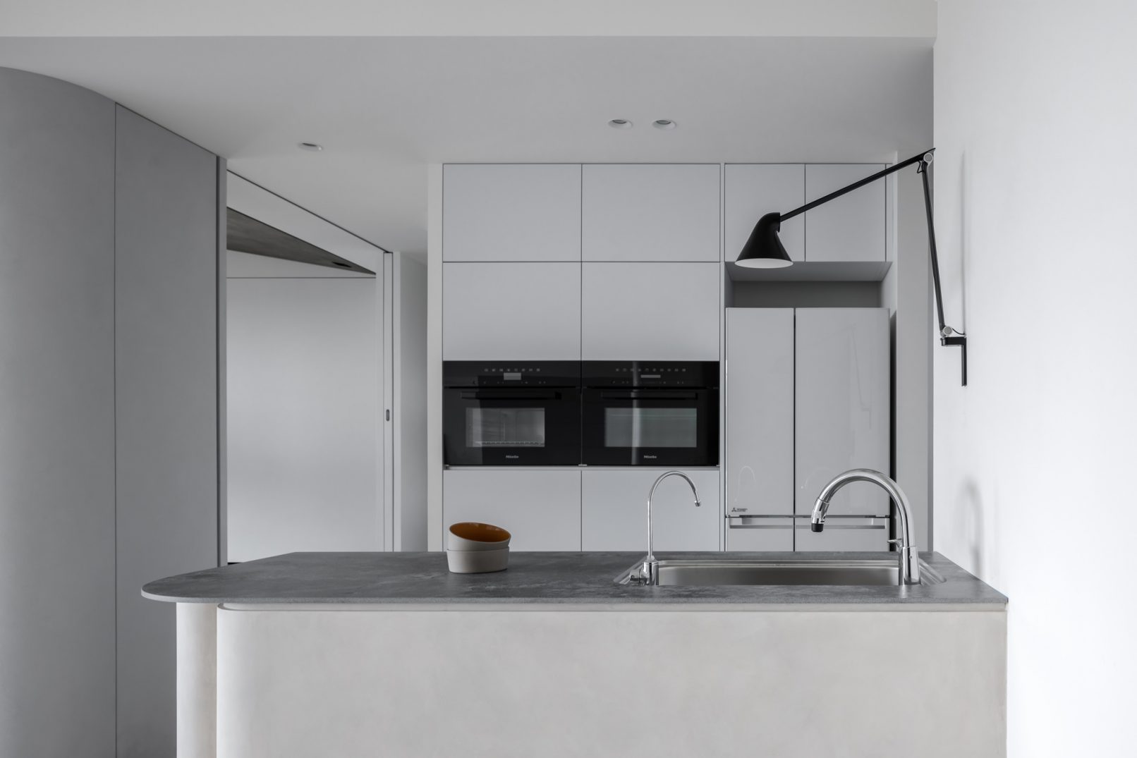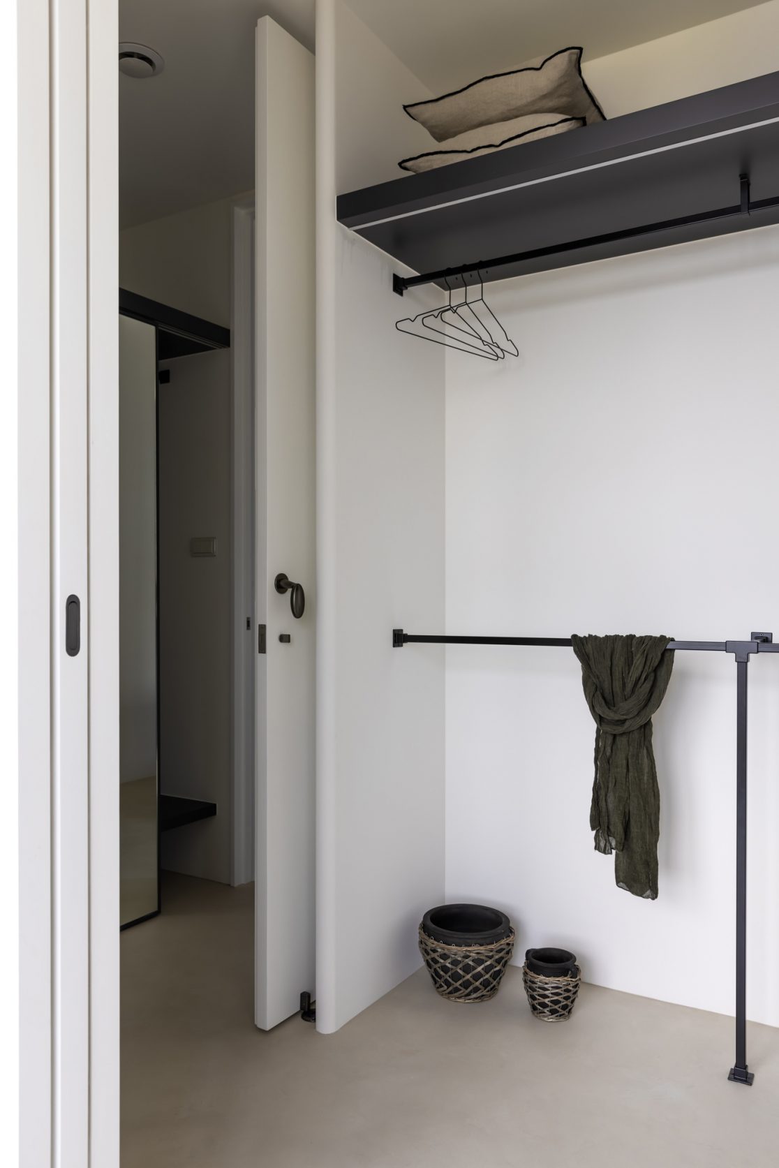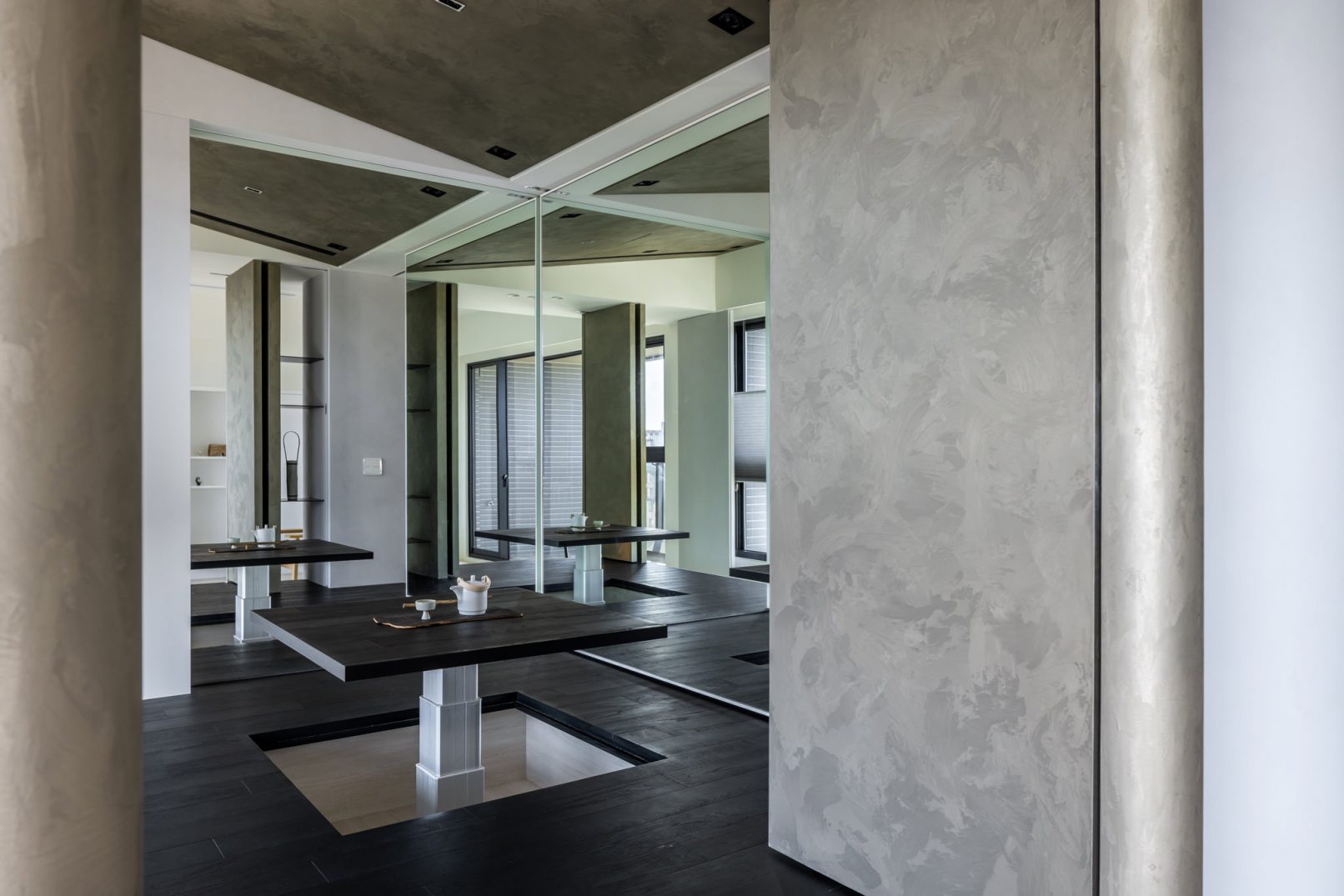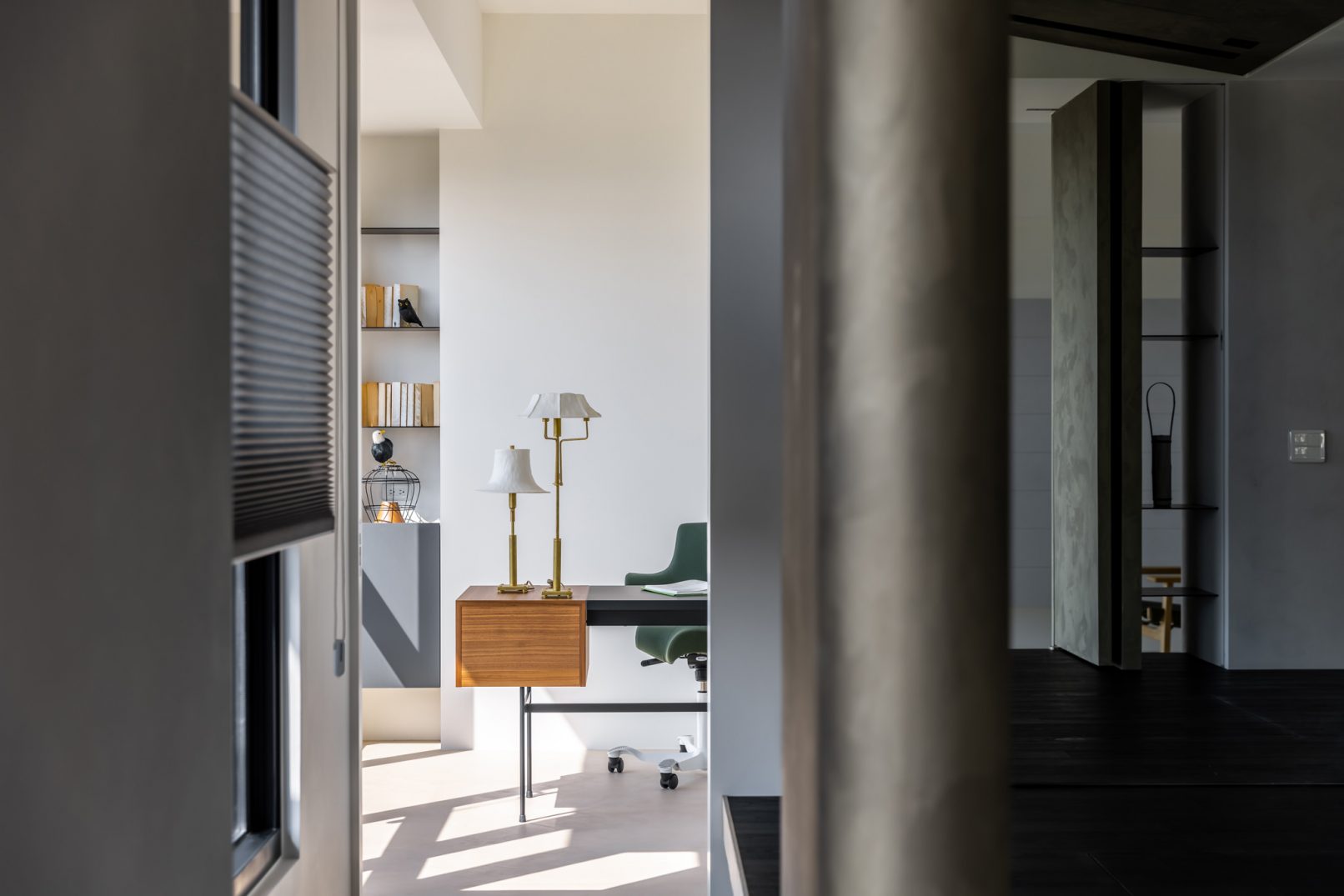 在更接近天空的 Penthouse 裡,住著一個長時間在家辦公的專案管理師,還有她每日 on schedule 的規律生活。選擇以毛胚交屋,提供自己與設計團隊更多規劃彈性。空間配置以獨立且彈性的生活畫面進行重塑,在三面開放的多功能架高區及雙入口更衣室的串連下,建立具極大自由度、能靈活開放或封閉的回字型動線。不僅滿足一人 24 小時活動其中,能輕鬆劃分工作與生活,更提供親友來訪時,圍塑獨立個室的自由調配度。回應屋主追求 Less is more 的理想藍圖,以少量活動家具配置、隱化整合收納機能與家電等,維持空間視覺的簡潔俐落。以「沙漠中的綠洲」為引題概念,呼應一段人生旅行記憶,並延伸整體自然感的線條設計;結合具肌理及觸感的多種塗料、特殊漆等材質,表達天地一壁、純粹的空間意象;多功能架高小亭亦彷若綠洲般的精神主景,提供家的中心歸屬與安定。Less is more,我們缺少的不是物質,而是自在、沒有束縛的生活。收穫真正的自由,一個實現所有喜歡的家。
