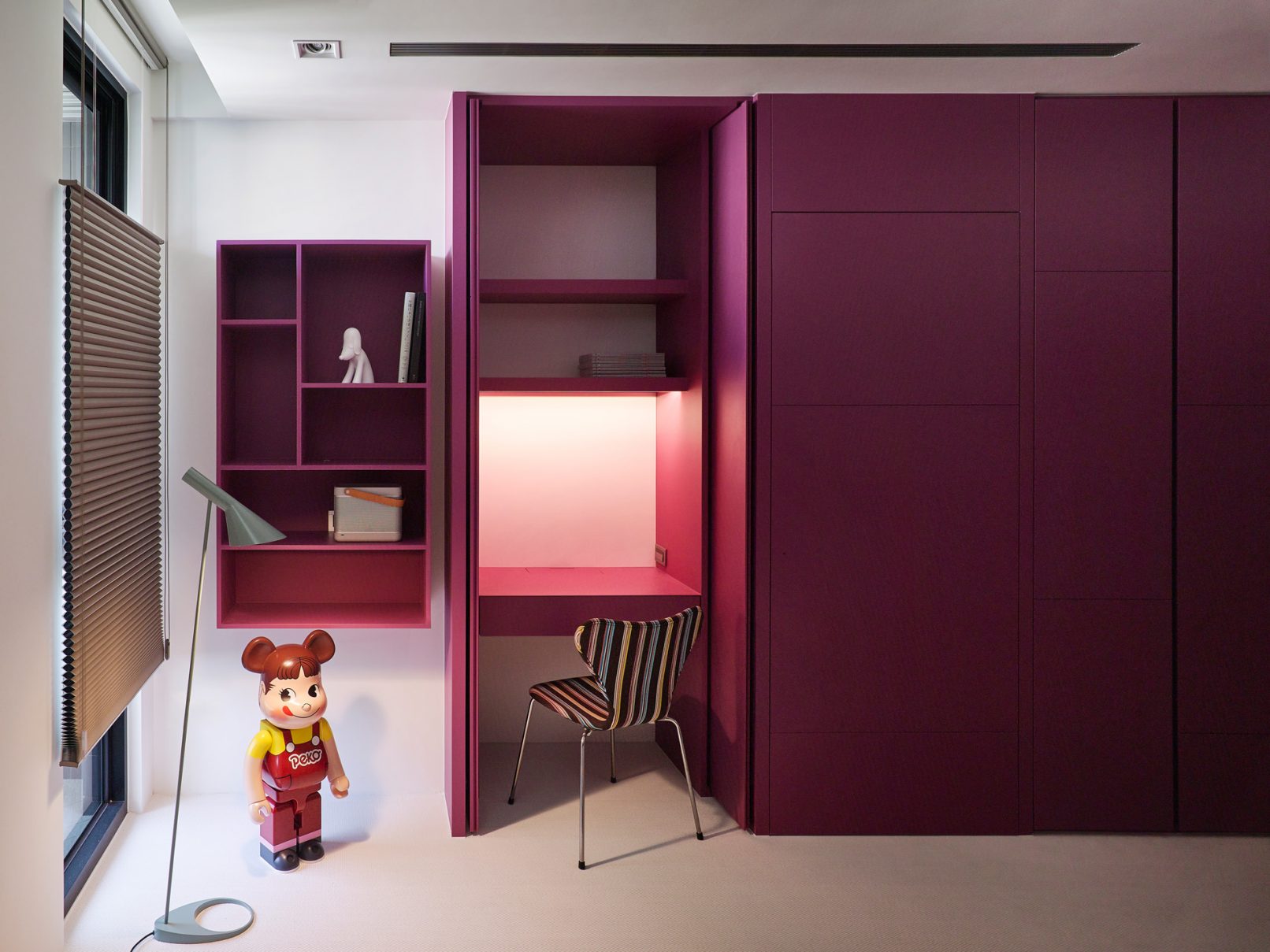 這是一個實踐夢想的家!從購買第一張設計師經典單椅(蛋椅 Egg Chair)開始,展開了屋主對家具的收集之路;因為對藝術家的喜愛,促使更貼近藝術家色彩與風格的空間。馥閣團隊大膽嘗試轉譯經典,跳脫傳統居所的想像,將屋主自身的藝術品味與空間結合。例如天花板的設計,就是源自 Paul Smith 的啟發,而具難度的彩繪工程,則請來了有著豐富壁畫經驗的法國藝術家 François Fléché 執行完成。這個家,繽紛有趣、處處是驚喜,透過回字型的動線,串連整個居家空間,連結家的情感,更碰觸並交融了屋主的內心。不單為生活帶來更豐富多樣的想像,也讓主人在自我的宇宙裡緩緩航行,一點一滴地綻放潛藏的童心。