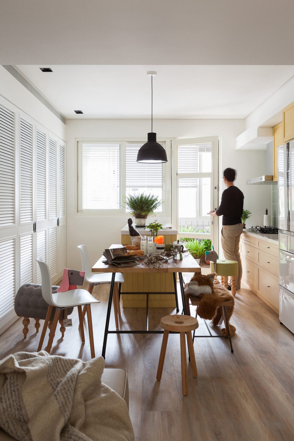 從穿著打扮我們猜得到一個人的職業或品味,從一個家最能窺見一個人的生活與個性。看見這個繽紛之家,你大概也能想像屋主的性格與生活:黃色、綠色、藍色與白色結合的繽紛色調,代表著他們的開朗活潑與富色彩的打扮;在相同空間裡,他們有不同的角色,各自舒服地工作、玩樂、休息。鄉村風的家具與配件,搭配著繽紛的收藏與裝飾,印證著這家人互動溝通的輕鬆隨意不拘謹。明亮的自然光線穿透空間,照亮著一個有聲有色的家,它屬於活潑外向敢於嘗新的大人,亦屬於家裡快樂天真的小孩。