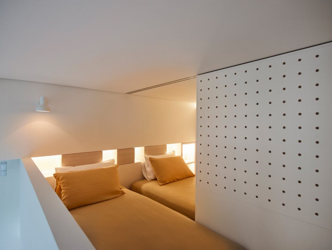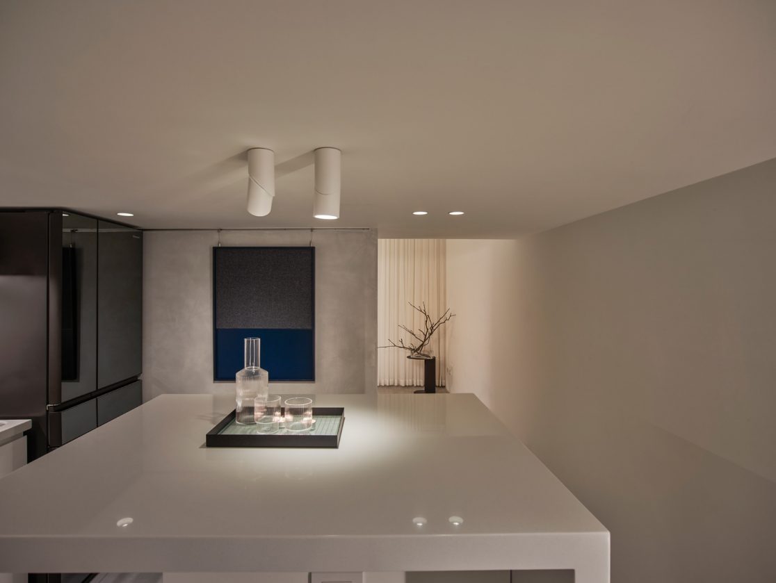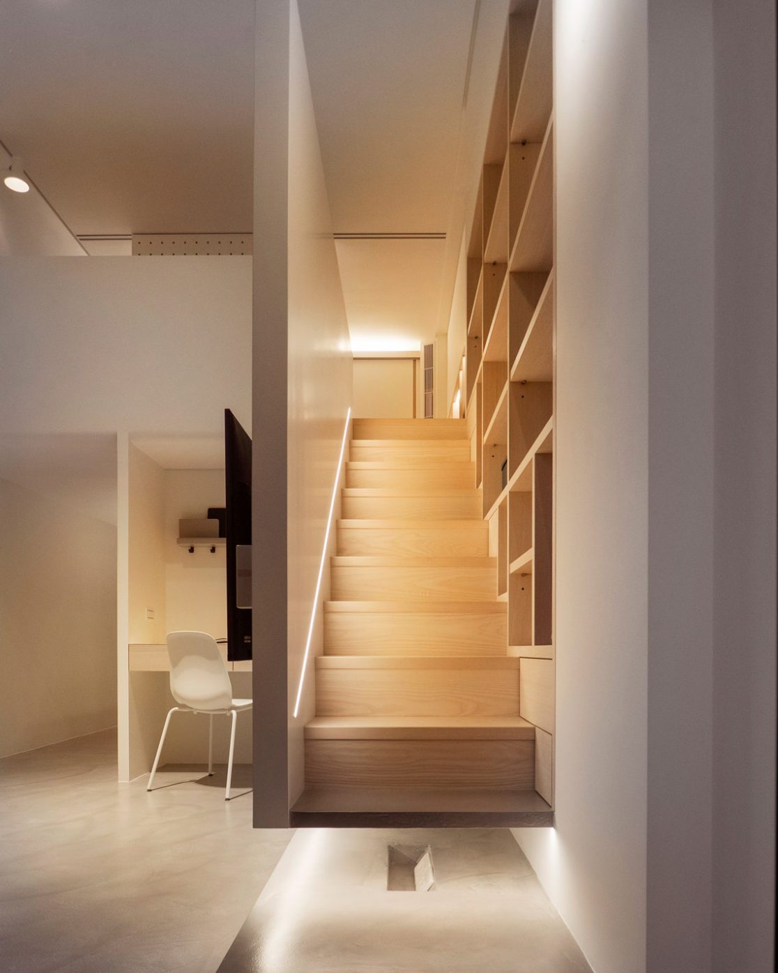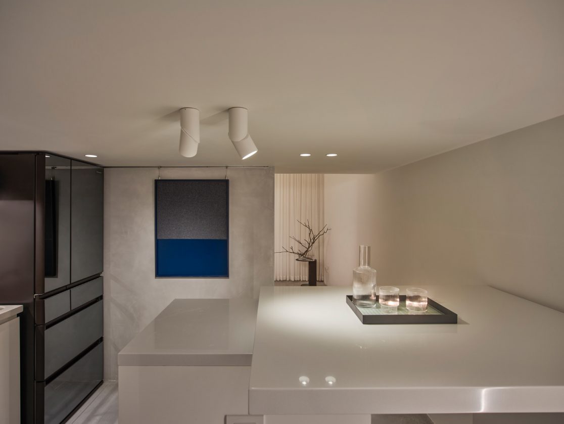 Taking a turn and you will discover so much more! Breaking up the once long and narrow floor plan in order to create better traffic flow and proper space management. The living room and the patio are now done in a way to better promote coziness as well. And a full kitchen is now possible too. A curved ceiling structure is now in place to free up additional room for particularly storage purpose and in terms enhance spacial flexibility at the same time. To make the most of the 30 m² for the owner of two sisters while maintain a sense of individuality and privacy both in function and design, some structural maneuver are in place. Kitchen island can double as a standing work table with an desk stationed by the living room, and a multipurpose partition is built as part of the bedroom. These are just some of the design decisions that really maximize every bit of the space available. Staying consistent with the clean, minimal outlook, Pandomo paint finds its way to the wall and the floor. This is a small home located in the heart of the city, a stripped down design is the chilled yet stylistic resolution to the otherwise crowed and noisy world outside.