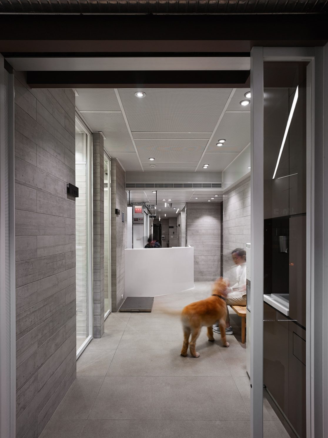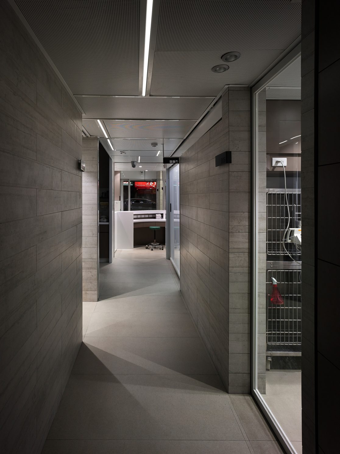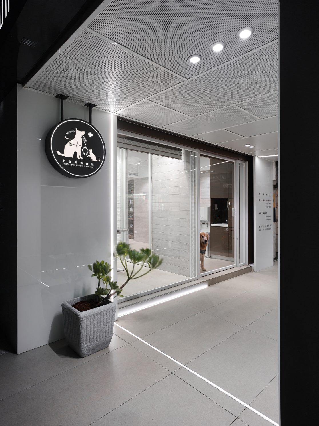 隨時代變遷,獸醫漸漸從過往不受重視,發展成具專業度與值得專敬的的行業。當為這家歷史悠久的動物醫院重新設計時,主要訴求是提升專業度形象,同時塑造乾淨、衛生且舒適的環境,讓寵物飼主能放鬆心情,陪同心愛的貓狗到醫院就診。門面以明亮通透的玻璃配以巧妙的燈光設計,從外觀先給予親切且專業的印象;室內空間設計上, 以對待寵物如待人般尊重禮遇為首要,不單將貓與狗的診間保持區隔不互相干擾,亦讓寵物們(尤其是貓)能更放鬆穩定地看診, 擁有私密與尊嚴。為改善診療間狹小卻又需要放滿各種器具的需求,將專業醫療器材設定於理想的動線,馥閣團隊量身訂造了結合診台、清潔與收納的多功能診療櫃,精算診台斜度,配上泡沫出水的水龍頭,方便診台清潔,同時整合放置各種器械工具的位置, 從外觀到實際需求,嶄新地呈現出專業可靠,尊重寵物而且舒適乾淨的動物醫院形象。
