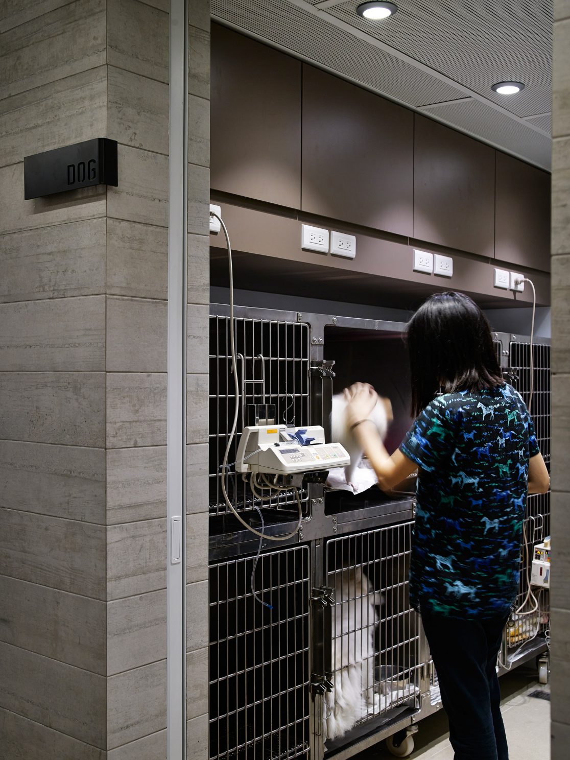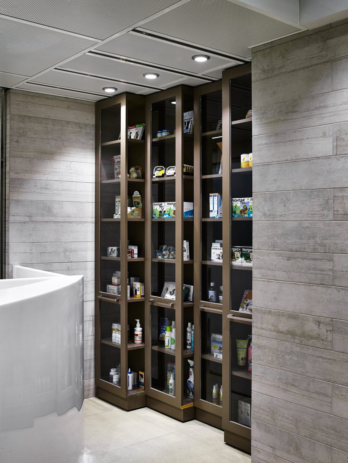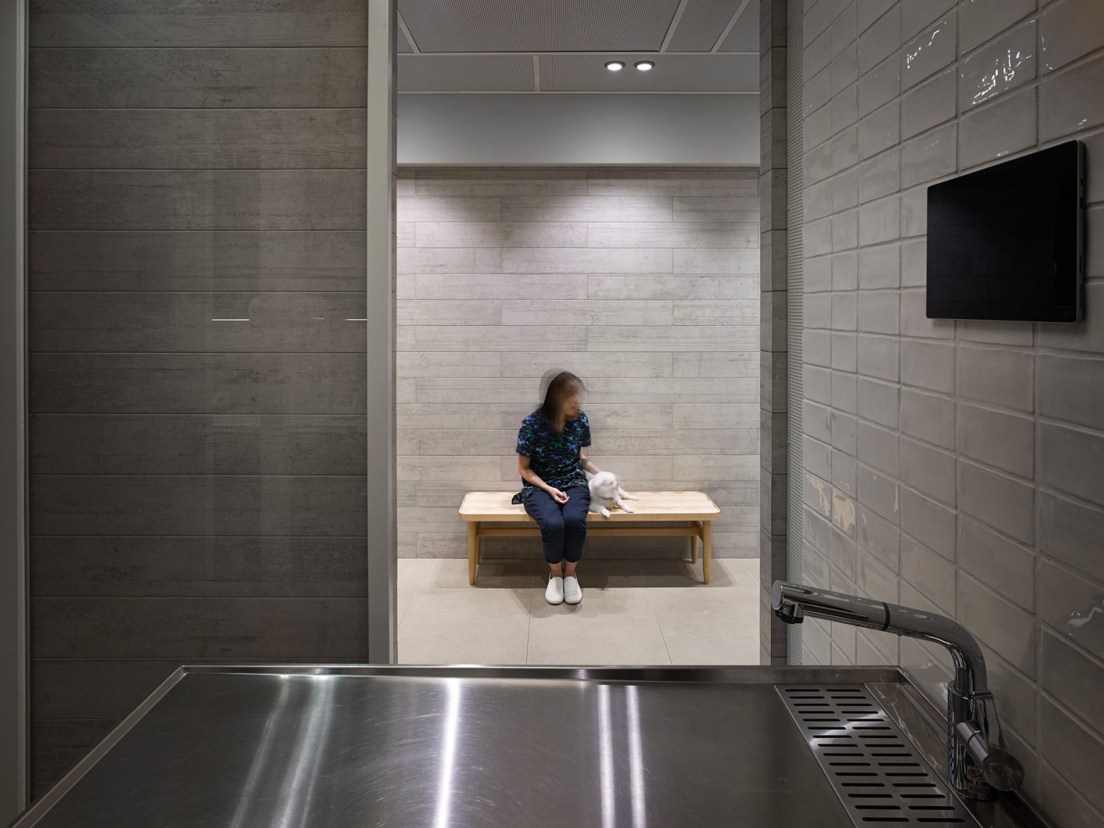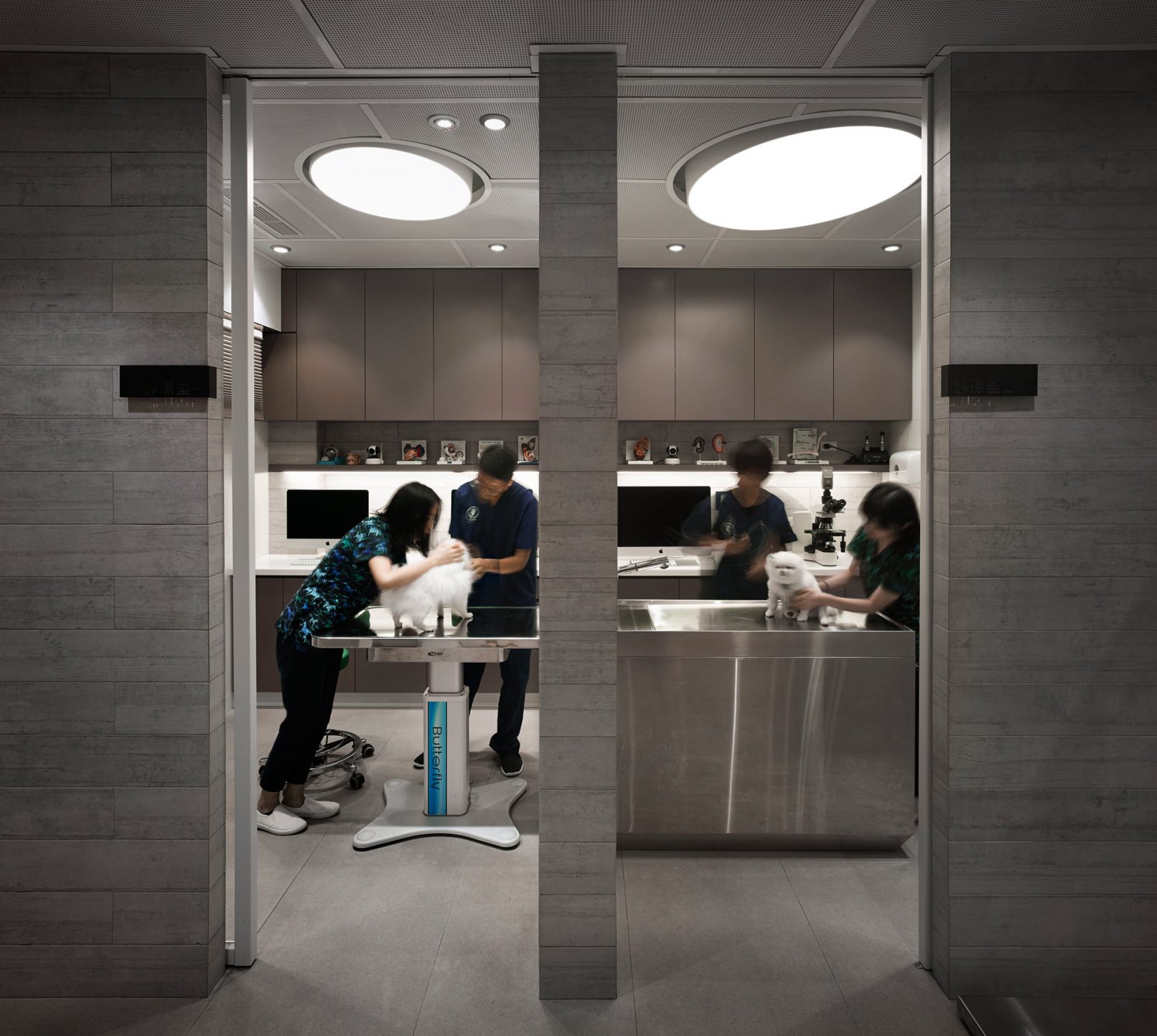 隨時代變遷,獸醫漸漸從過往不受重視,發展成具專業度與值得專敬的的行業。當為這家歷史悠久的動物醫院重新設計時,主要訴求是提升專業度形象,同時塑造乾淨、衛生且舒適的環境,讓寵物飼主能放鬆心情,陪同心愛的貓狗到醫院就診。門面以明亮通透的玻璃配以巧妙的燈光設計,從外觀先給予親切且專業的印象;室內空間設計上, 以對待寵物如待人般尊重禮遇為首要,不單將貓與狗的診間保持區隔不互相干擾,亦讓寵物們(尤其是貓)能更放鬆穩定地看診, 擁有私密與尊嚴。為改善診療間狹小卻又需要放滿各種器具的需求,將專業醫療器材設定於理想的動線,馥閣團隊量身訂造了結合診台、清潔與收納的多功能診療櫃,精算診台斜度,配上泡沫出水的水龍頭,方便診台清潔,同時整合放置各種器械工具的位置, 從外觀到實際需求,嶄新地呈現出專業可靠,尊重寵物而且舒適乾淨的動物醫院形象。