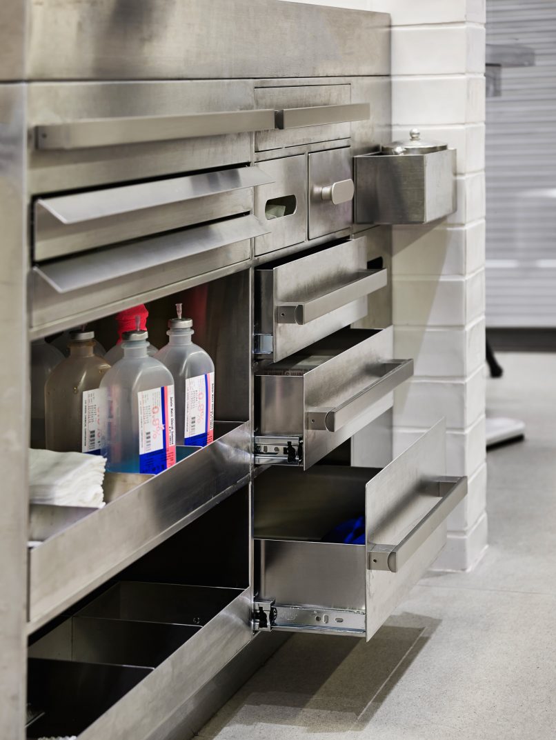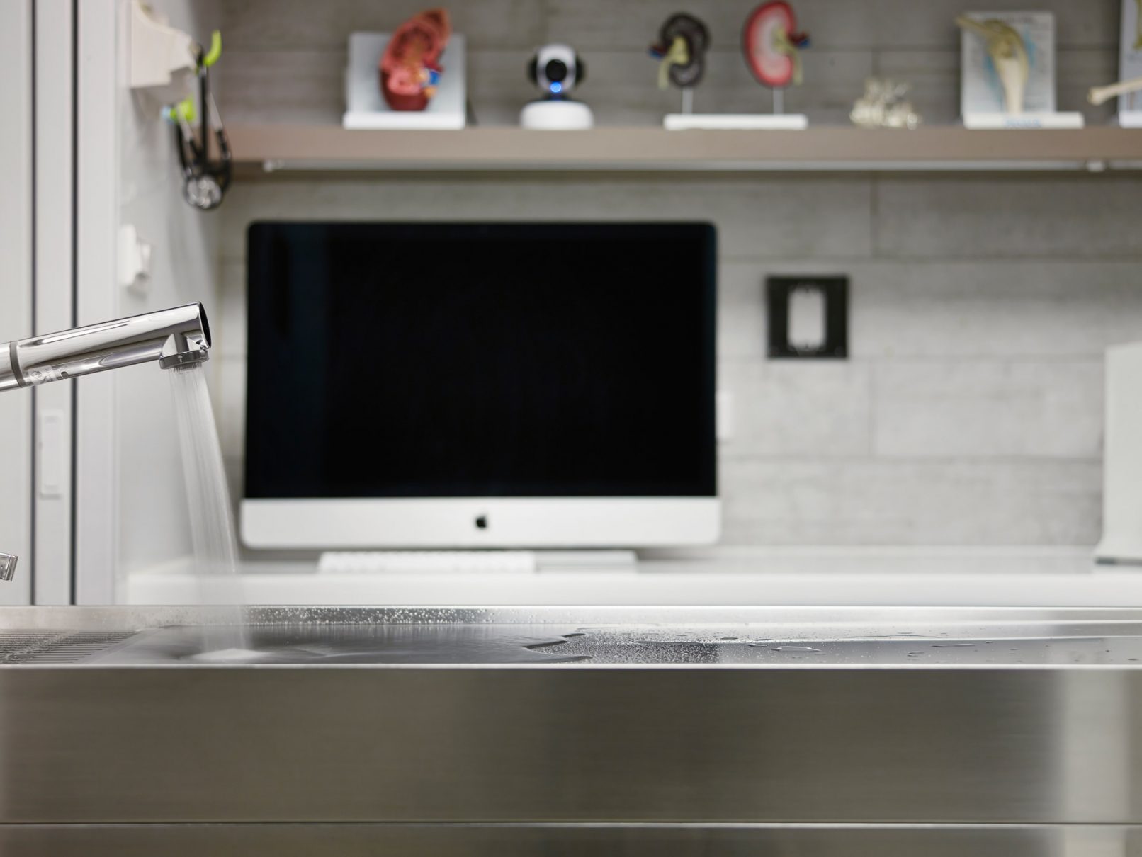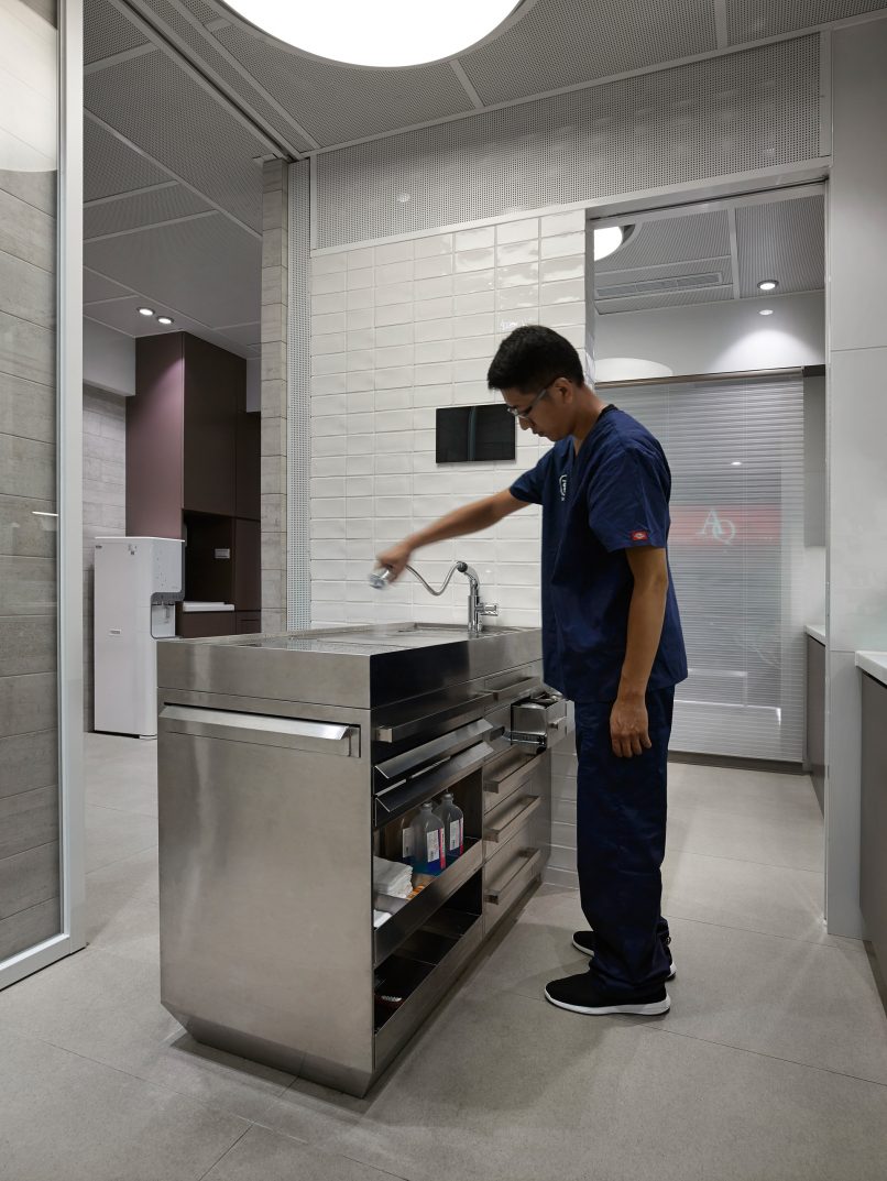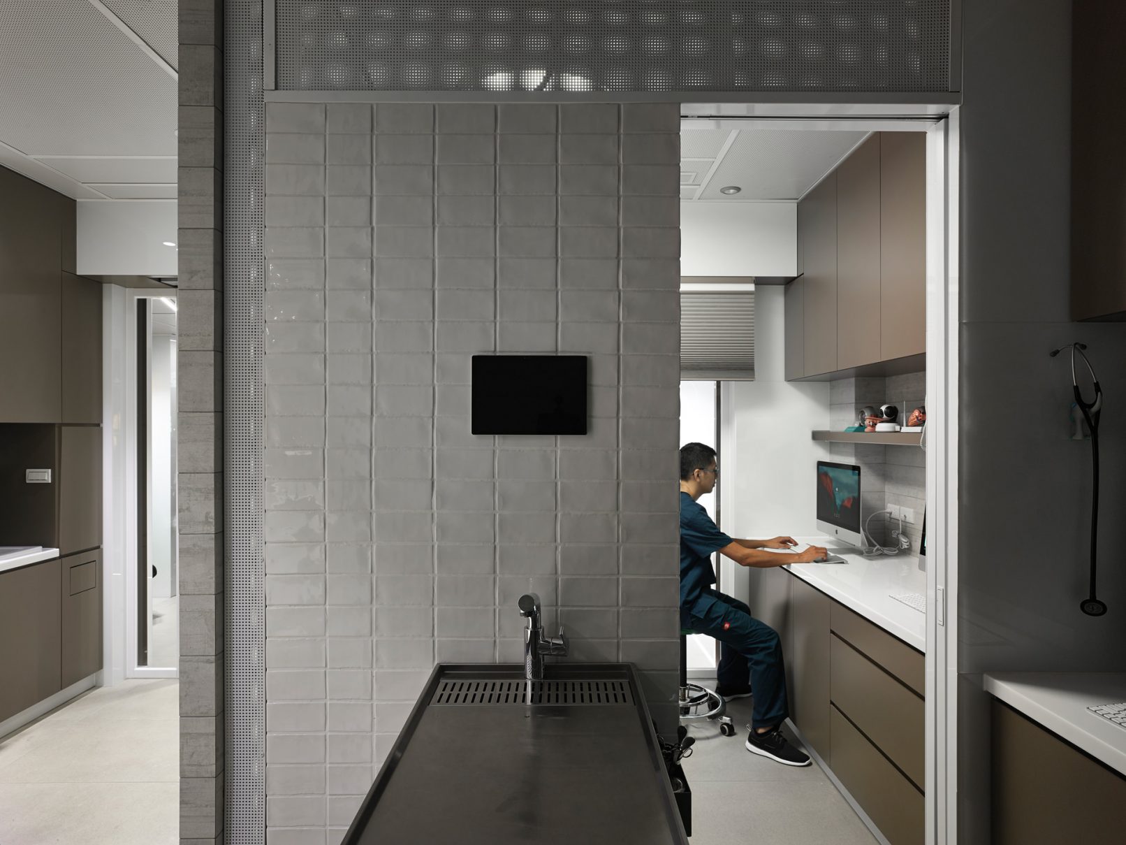 隨時代變遷,獸醫漸漸從過往不受重視,發展成具專業度與值得專敬的的行業。當為這家歷史悠久的動物醫院重新設計時,主要訴求是提升專業度形象,同時塑造乾淨、衛生且舒適的環境,讓寵物飼主能放鬆心情,陪同心愛的貓狗到醫院就診。門面以明亮通透的玻璃配以巧妙的燈光設計,從外觀先給予親切且專業的印象;室內空間設計上, 以對待寵物如待人般尊重禮遇為首要,不單將貓與狗的診間保持區隔不互相干擾,亦讓寵物們(尤其是貓)能更放鬆穩定地看診, 擁有私密與尊嚴。為改善診療間狹小卻又需要放滿各種器具的需求,將專業醫療器材設定於理想的動線,馥閣團隊量身訂造了結合診台、清潔與收納的多功能診療櫃,精算診台斜度,配上泡沫出水的水龍頭,方便診台清潔,同時整合放置各種器械工具的位置, 從外觀到實際需求,嶄新地呈現出專業可靠,尊重寵物而且舒適乾淨的動物醫院形象。