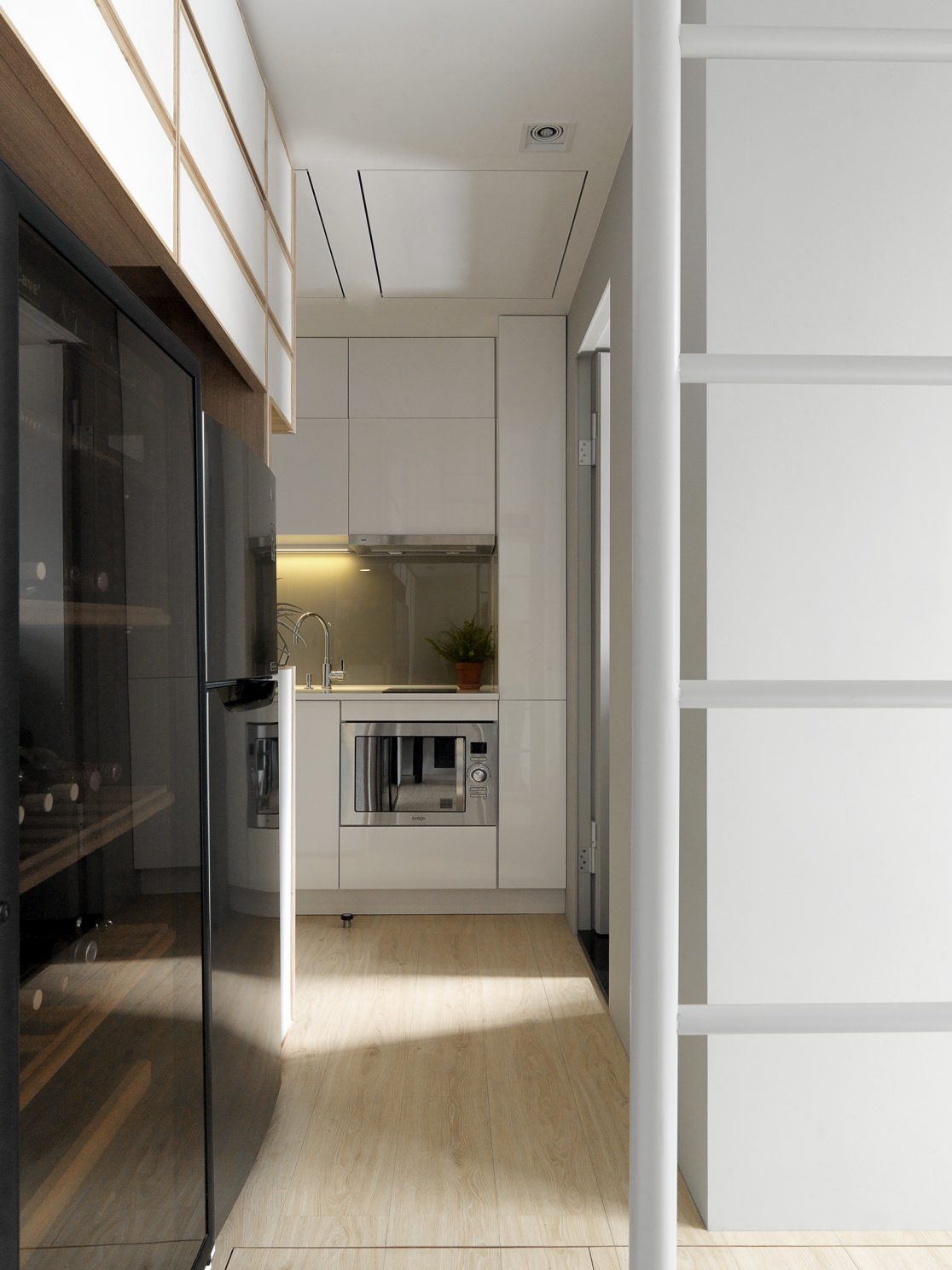 Housing needs of the modern days tend to call for small and flexible solutions. We want to establish a seamless circulation from the kitchen to the bedsit and all the way to the back porch. So we start with having a convertible twin bed that can be turned into a couch for some spacial flexibility; The living room is designed with emphasis on versatility – a family space that actually fits the different needs of family members, be it music, wine, or other form of relaxation. The mezzanine area is the official kid’s corner. It came equipped with tempered glass layer structure so that everyone can have their own space without sacrificing interaction. This is a house where little design details are made based on practical and keen observation of family life. With enough emphasis of the needs of individual family members, comes a healthier, stronger family.