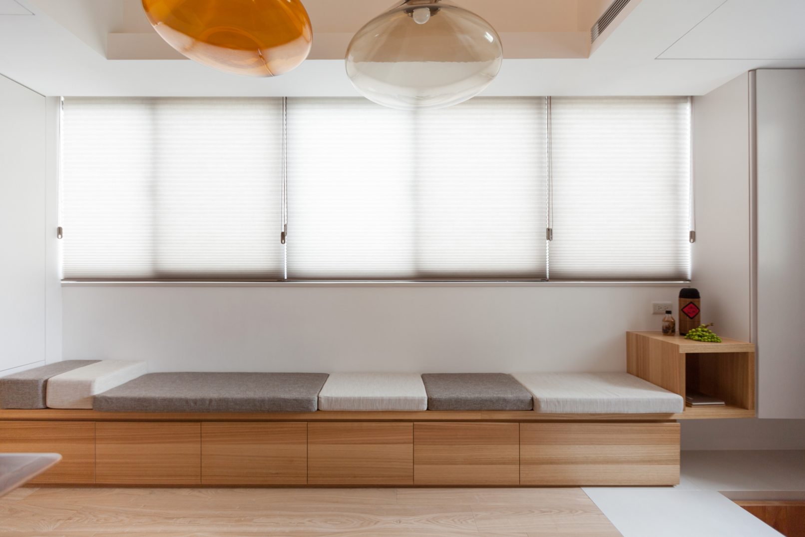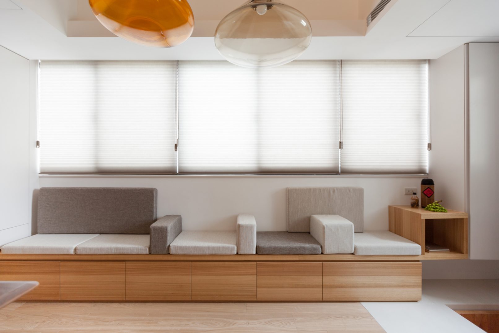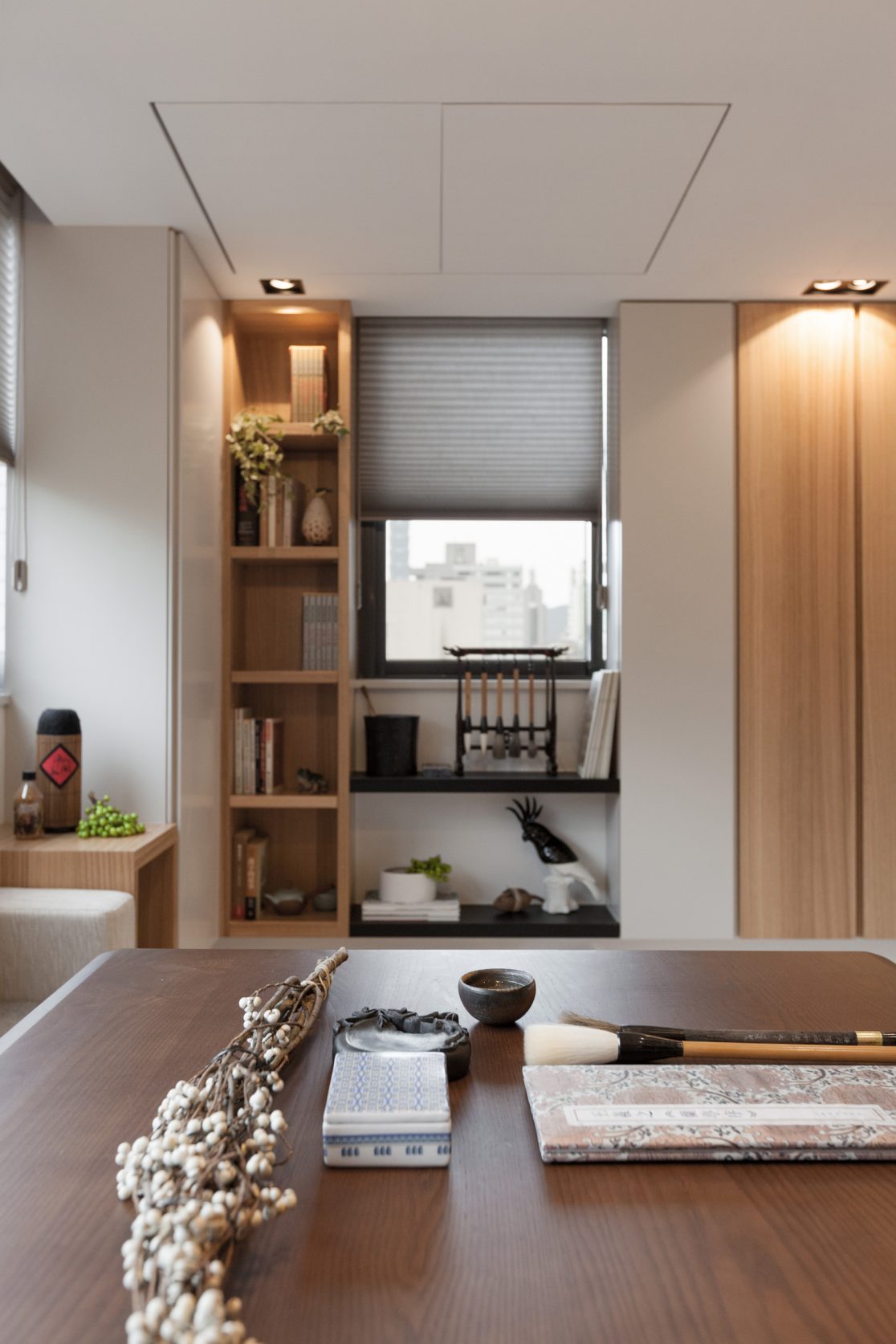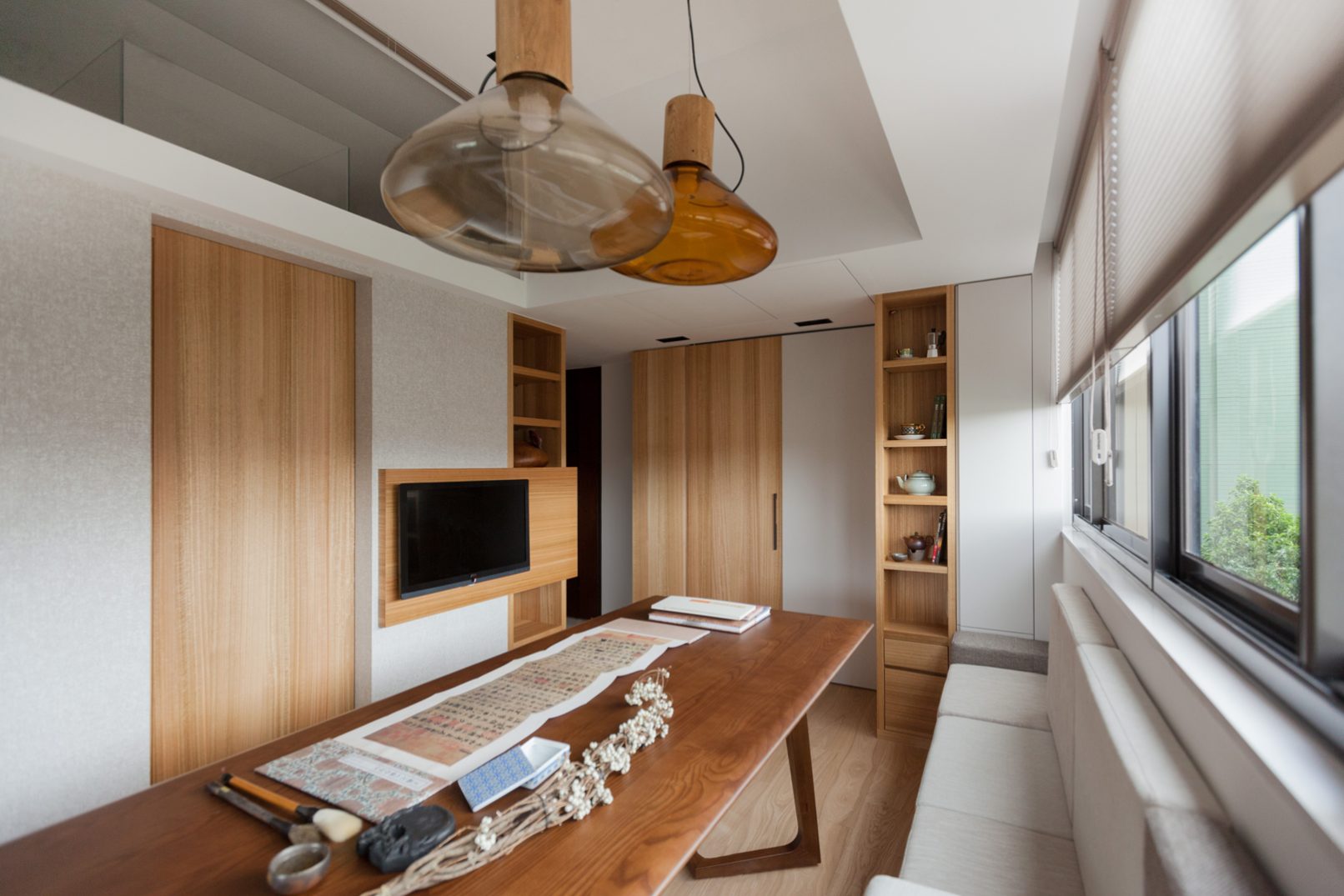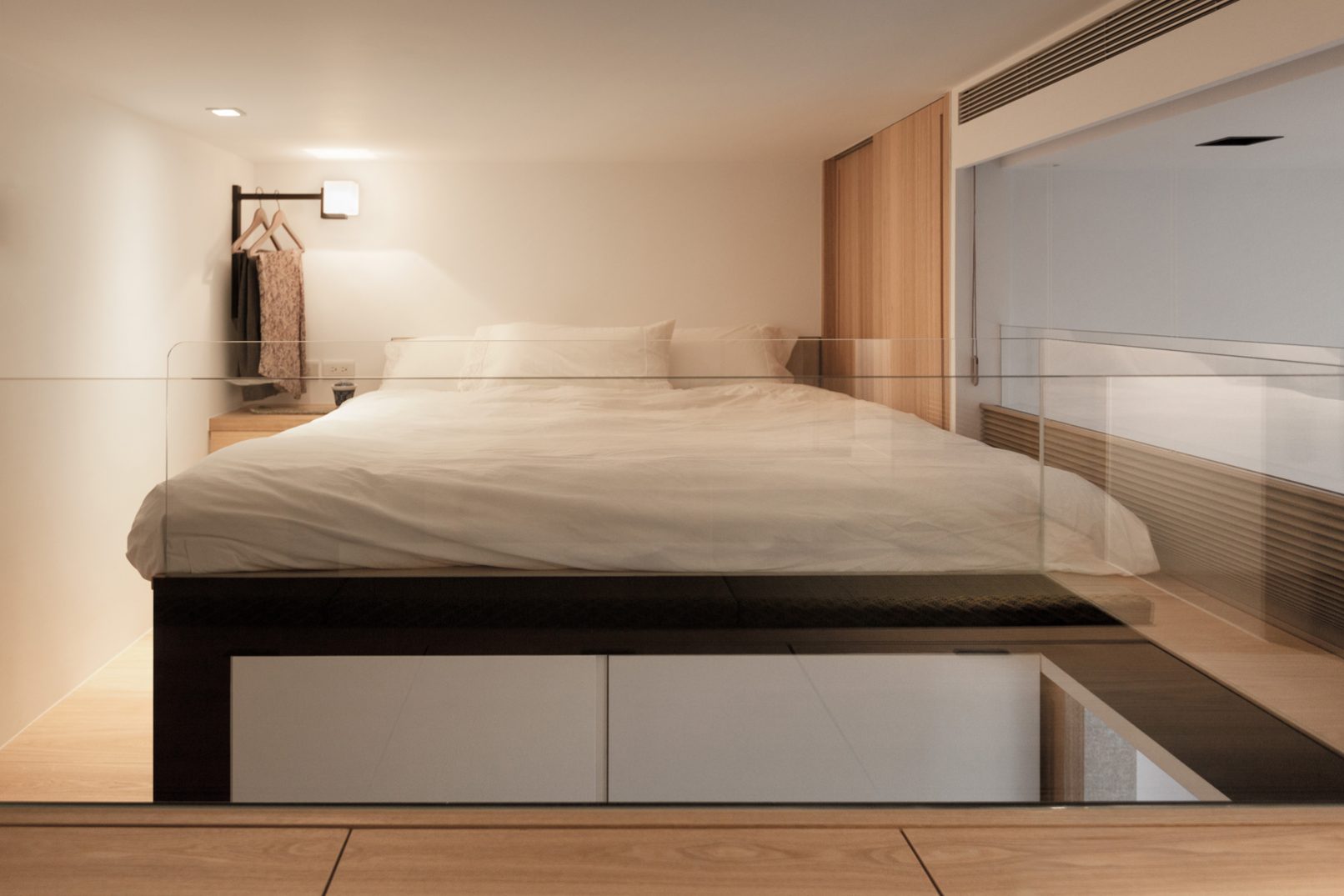 當活在都市裡的空間越來越狹小,我們需要更大膽更豐富的想象力,挑戰空間的限制並解決問題:8坪空間摒掉傳統格局配置,改成長形開放式公共空間,不只讓空間感放大,也讓屋主熱愛喝茶、書法、禪修的雅趣融入其中,與明亮自然的色調相呼應;量身訂造的可移動電動樓梯,各種隱藏在意想不到的角落的機關收納,甚至還有隱藏在客廳的泡腳池,以小見大的機能生活,完全實踐在這個簡練住宅裡,更顛覆未來的迷你住宅生活,開拓出另一片創意新天地。
