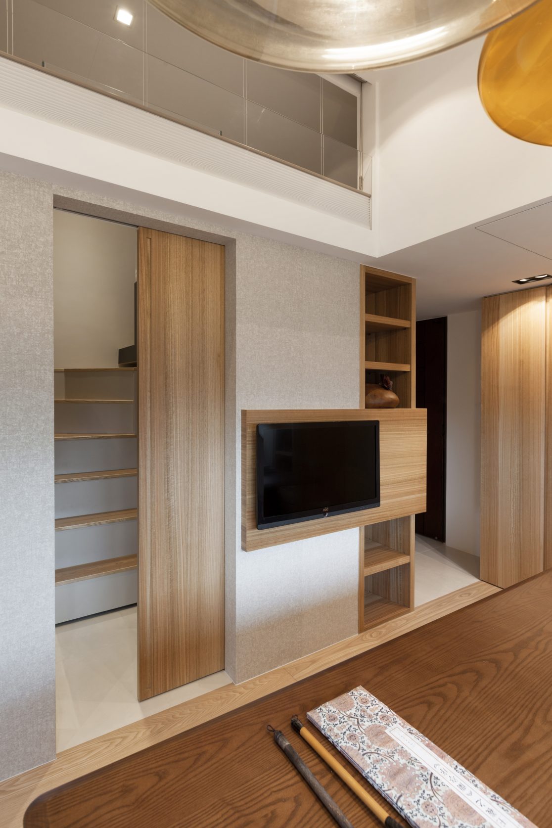Urban living spaces seemly shrink by the day, so our idea of home now plays a bigger role than ever when it comes to nagging spatial challenges. A bright, elongated 26m² room that serves as an open public area while also capable of accommodating the owner’s recreational needs. Other unique house elements include a custom-made, mobile electric stairs, hidden drawers and a food bath pool tucked away inside the living room. Packing so many features into a small house is always a challenge. Here we aim to maximize all available space and really focus on function as a cutting-edge take of contemporary living arrangements.