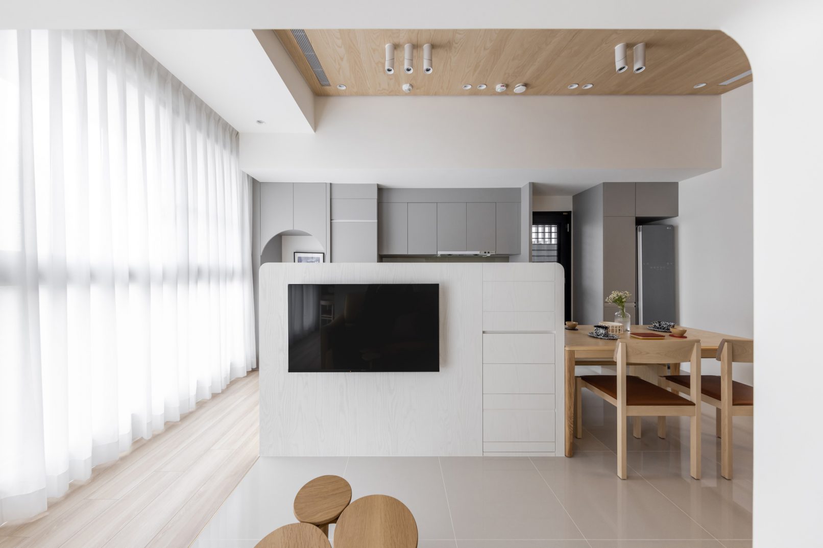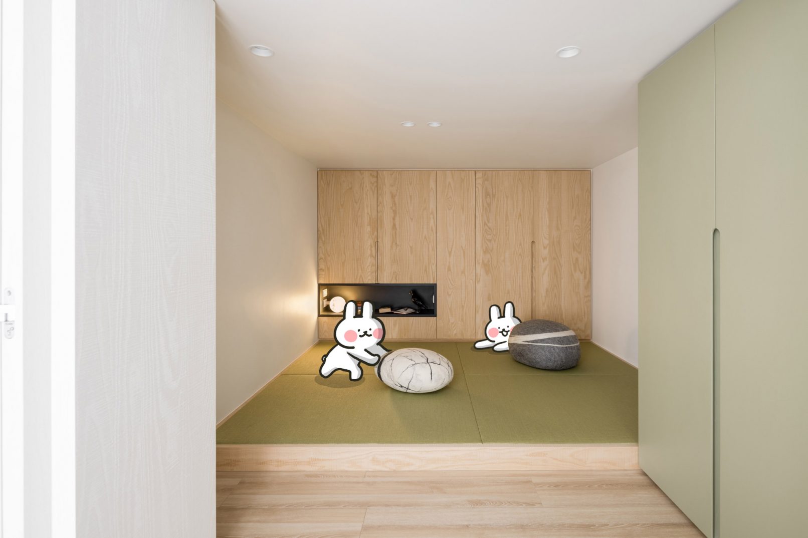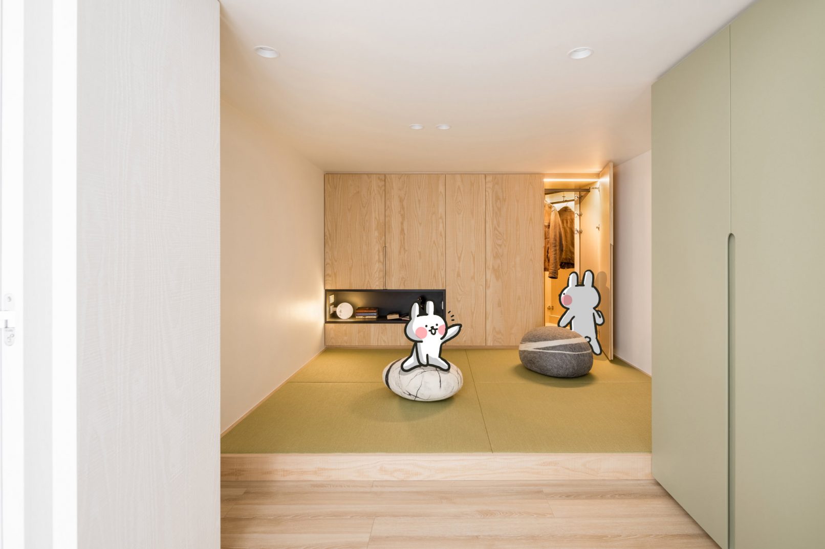 室內面積|15+3.5 坪(49.5+11.5 m²) 房屋狀況|新成屋(預售客變) 格局| 3 房 2 廳 1 衛 使用人數|2 大 2 小 主要建材|地暖、磁磚、木皮、乳膠漆、磁性漆、烤漆、BODAQ 裝飾軟片、鐵件、玻璃、矽鋼石、榻榻米