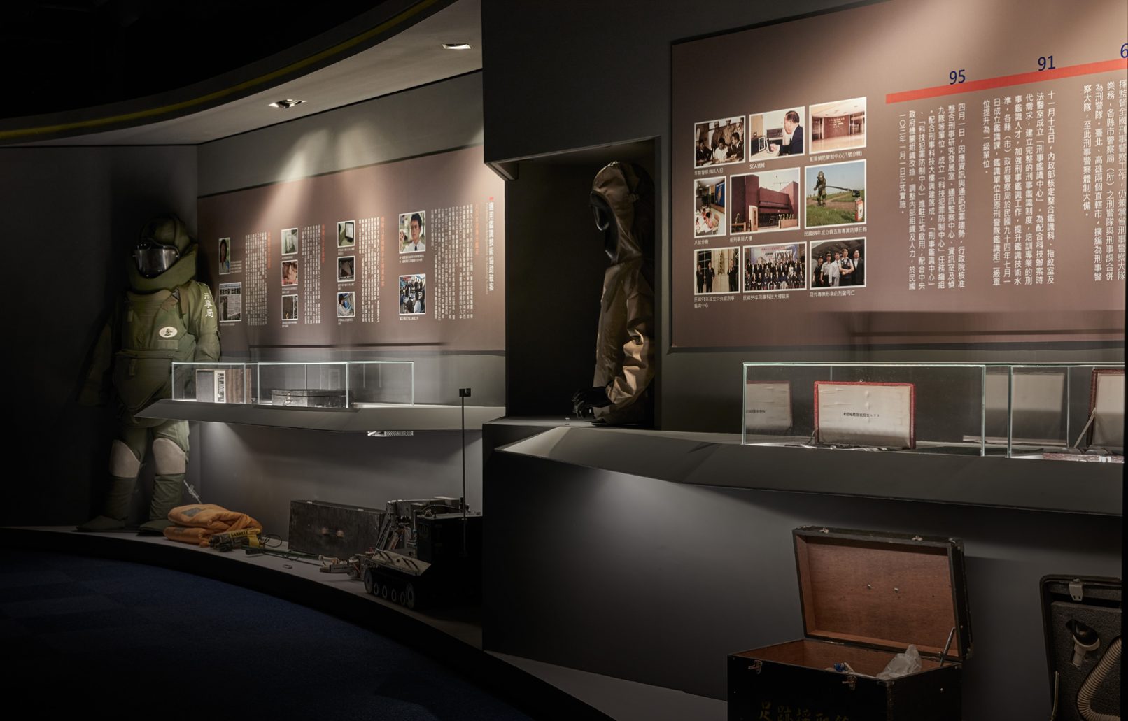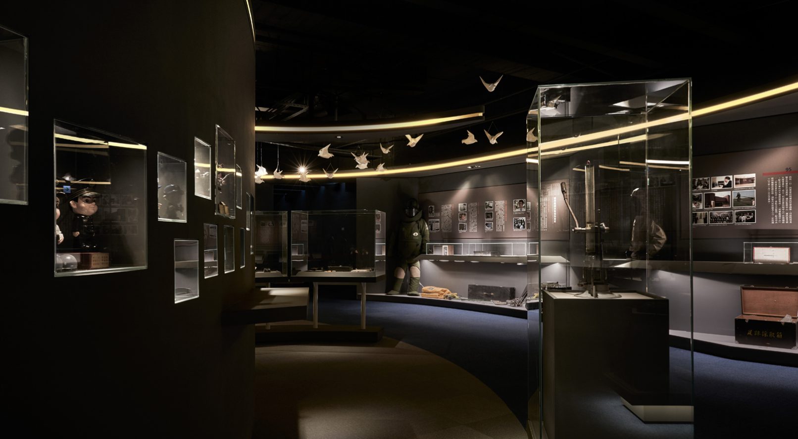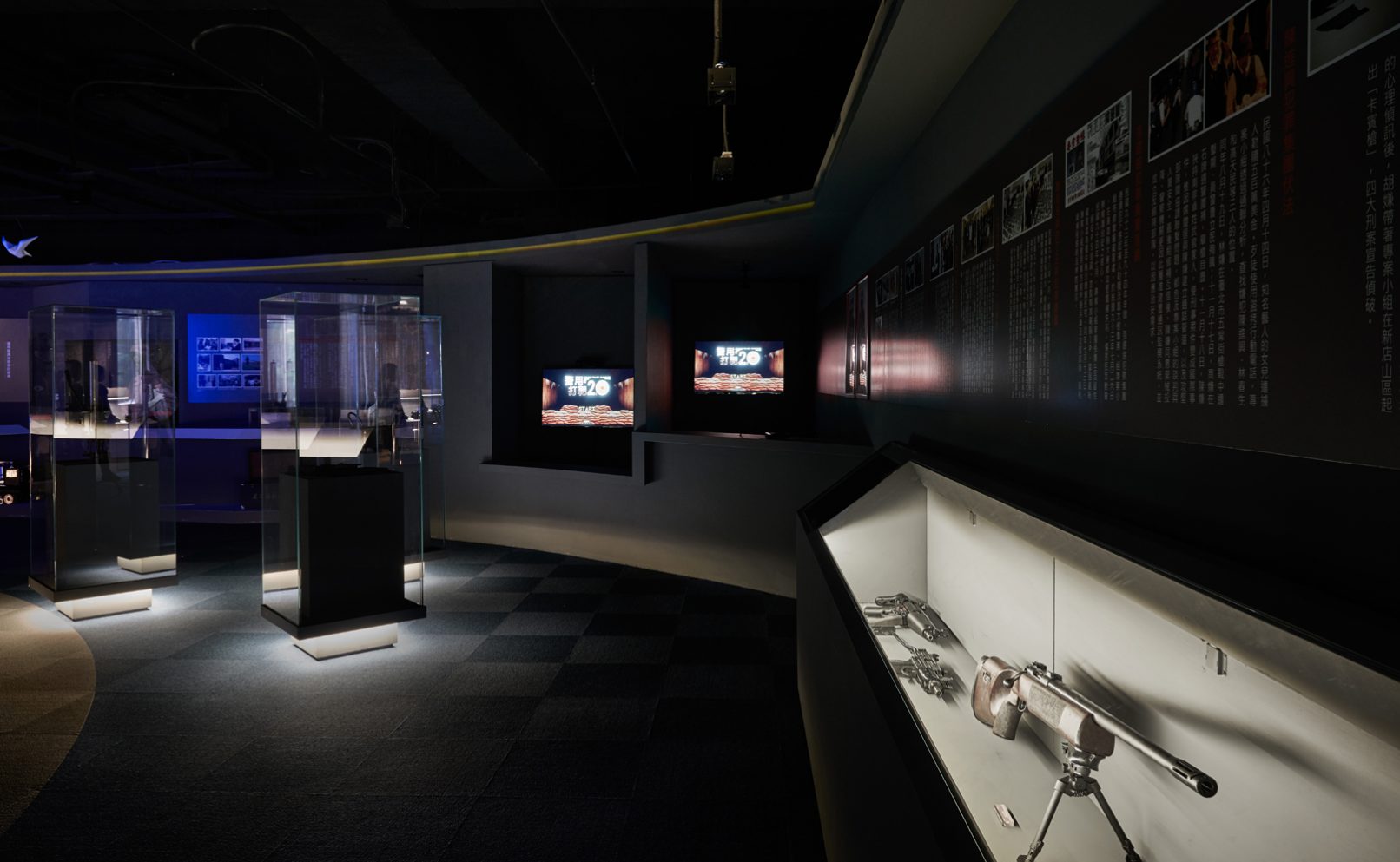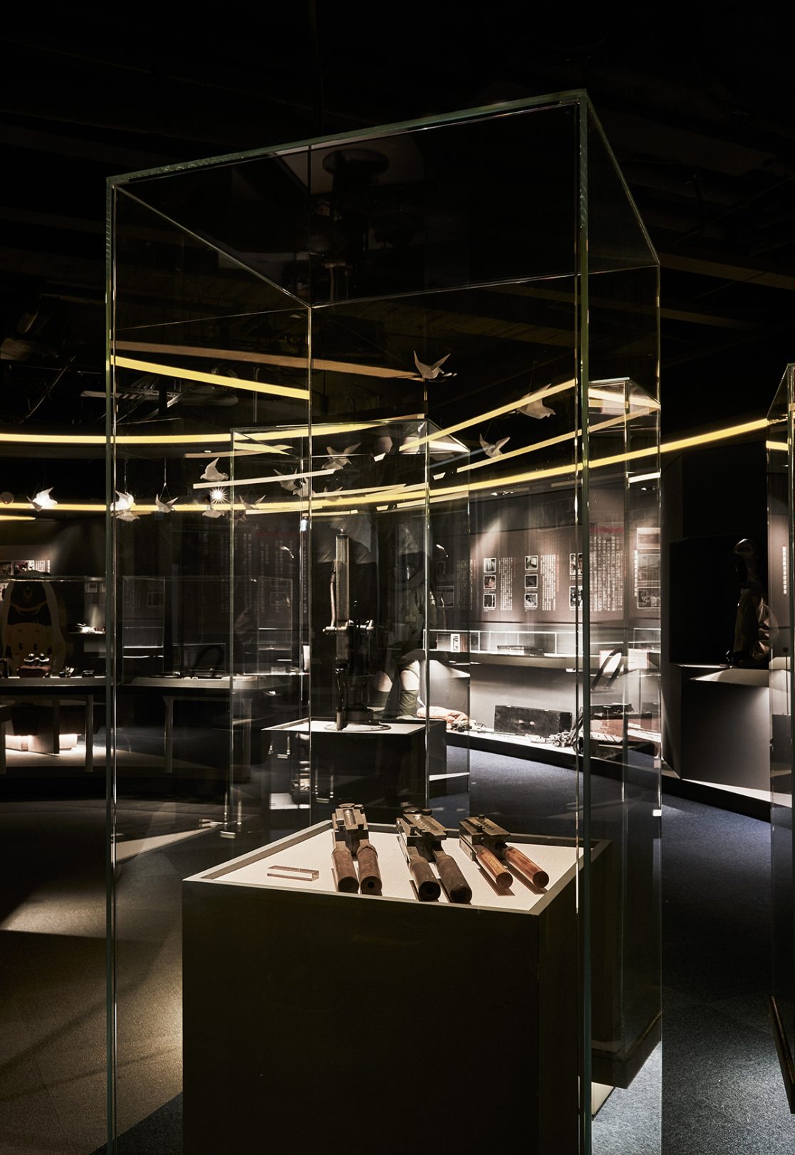 作為台灣首座具規模的警察史蹟館,這個難得的空間保存了自清朝建立警察制度、日據時期至今,百餘年來關於台灣警政歷史的變革 。 我們從沒注意到,警察是時時刻刻無處不在,默默地隱身在社會上不同的角落守護著我們。因此史蹟館空間的主要設計概念,以一隻碩大的金吾鳥(警鴿)翱翔於空中由上俯視為其輪廓,象徵著民眾們總是在不知不覺間受到保護;以3D列印技術打造、懸掛在空間中的「警鴿吊燈」,有的發亮、有的被照亮,就如那些在明或在暗裡保護我們的無名英雄; 帶著光源的警鴿與櫃體上方象徵警帽帽簷般的黃色燈條,指引出安全的參觀動線;配合地毯上深淺灰色及藍色,分別代表內外兩圈環狀動線外,也象徵了警徽圖騰。在這裡,看不見的是無時無刻的保護,看得見的是值得你細細了解的警察歷史。