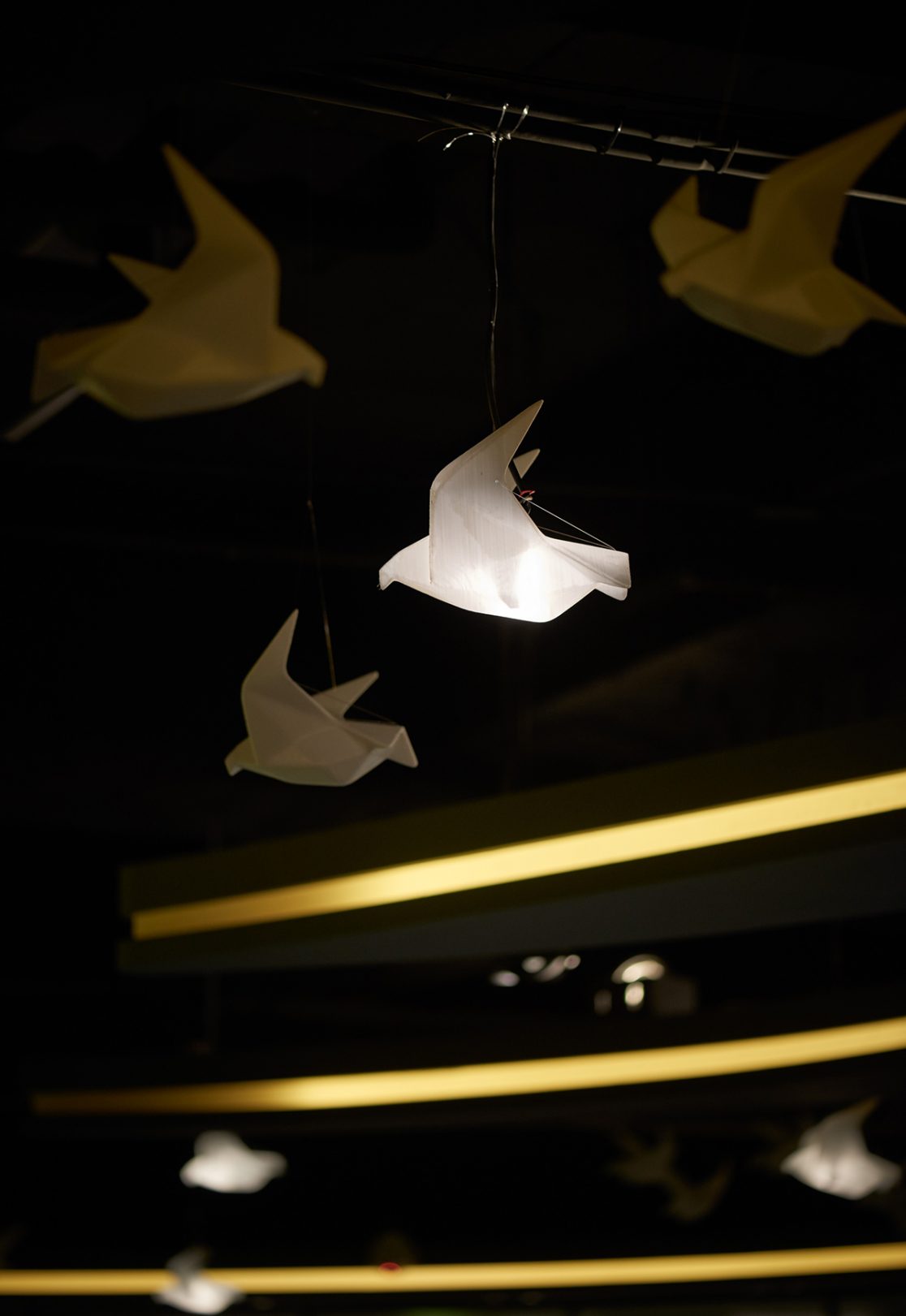 We take inspiration of such idea and design a huge bird symbol, together with the 3D-printed bird-shape lights to present the nameless, careful watch person of police men and women. Yellow light strips, a cue inspires by the brim of police caps, work in conjunction with the bird lights to point out the way of exhibition. Different shades of grey and blue, while demonstrate circulation, also serve as a design nod to the police logo. Police history is also the history of protection of the people. We hope our designs have subtlety reflect and relay the very important message to the public.